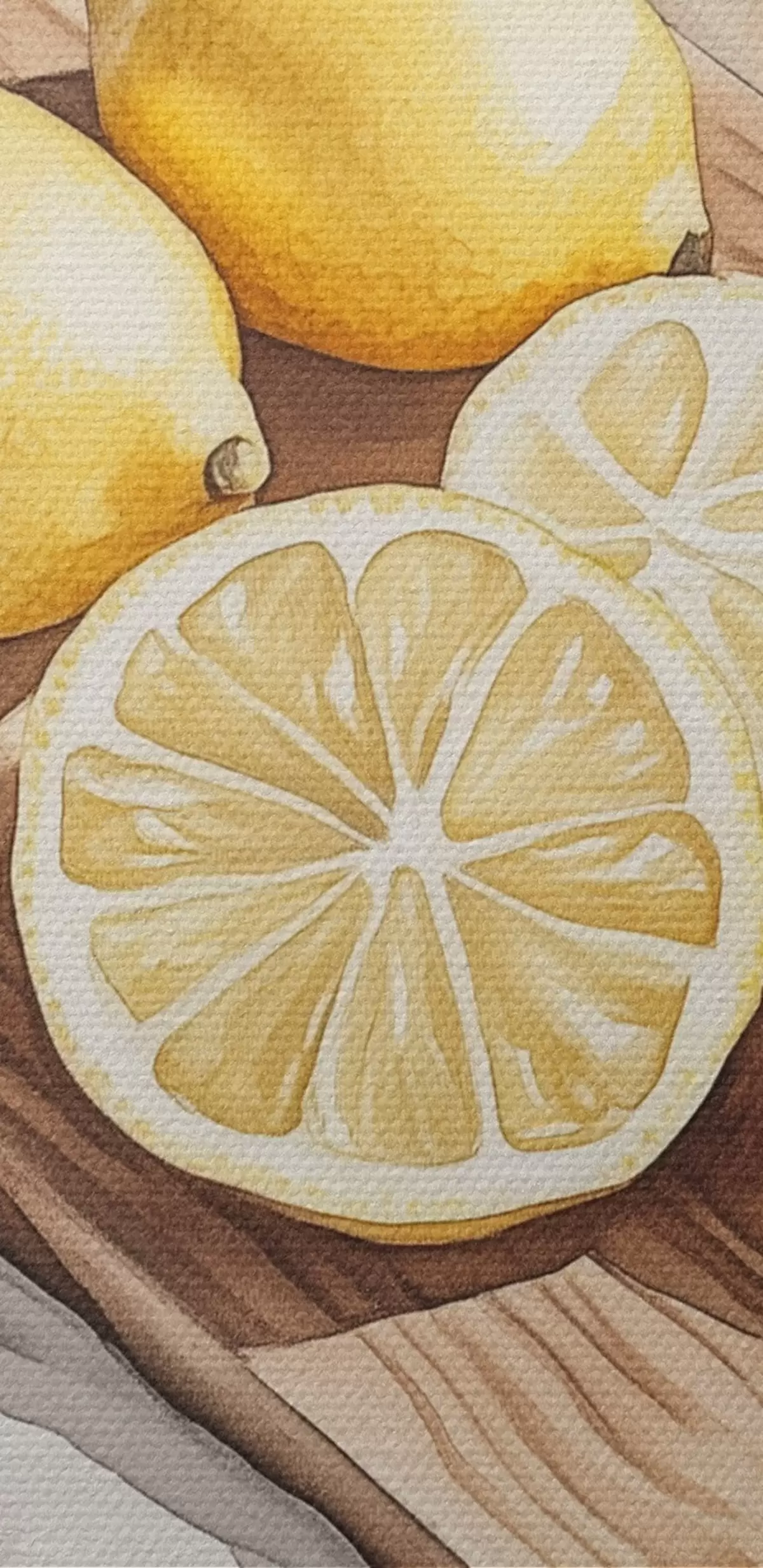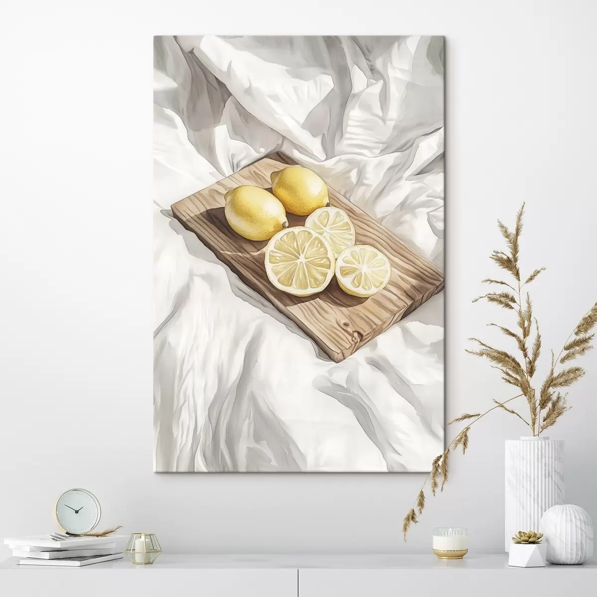 Obraz Cytryny na drewnianej desce, akwarela, styl rustykalny Nr s43064