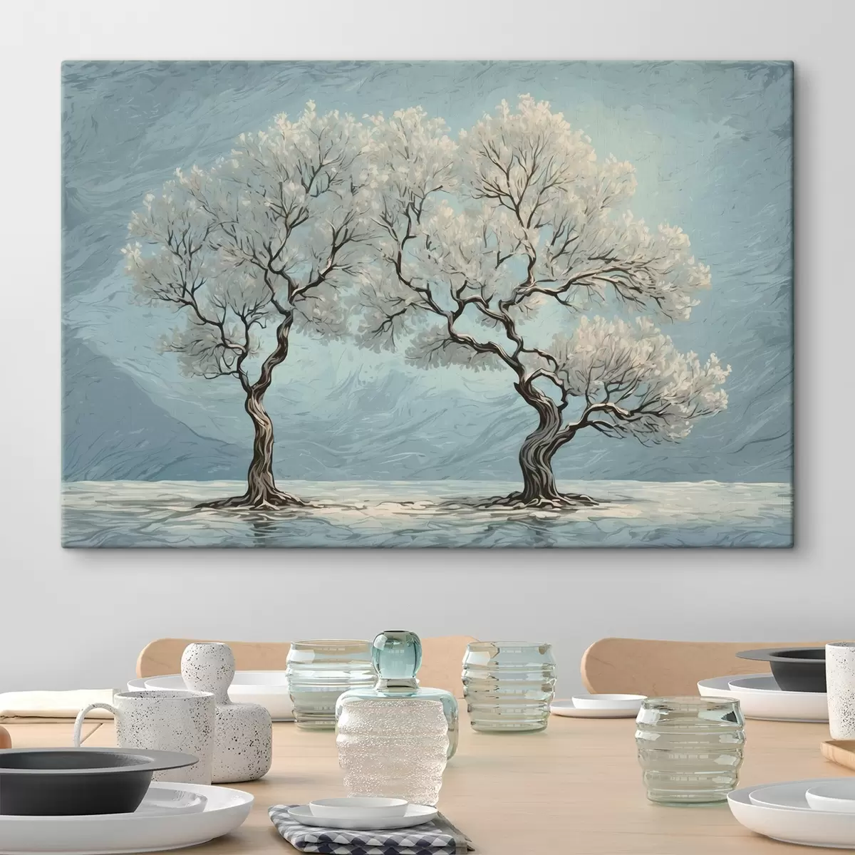 Obraz Białe drzewa w stylu malarstwa akrylowego Nr s43112