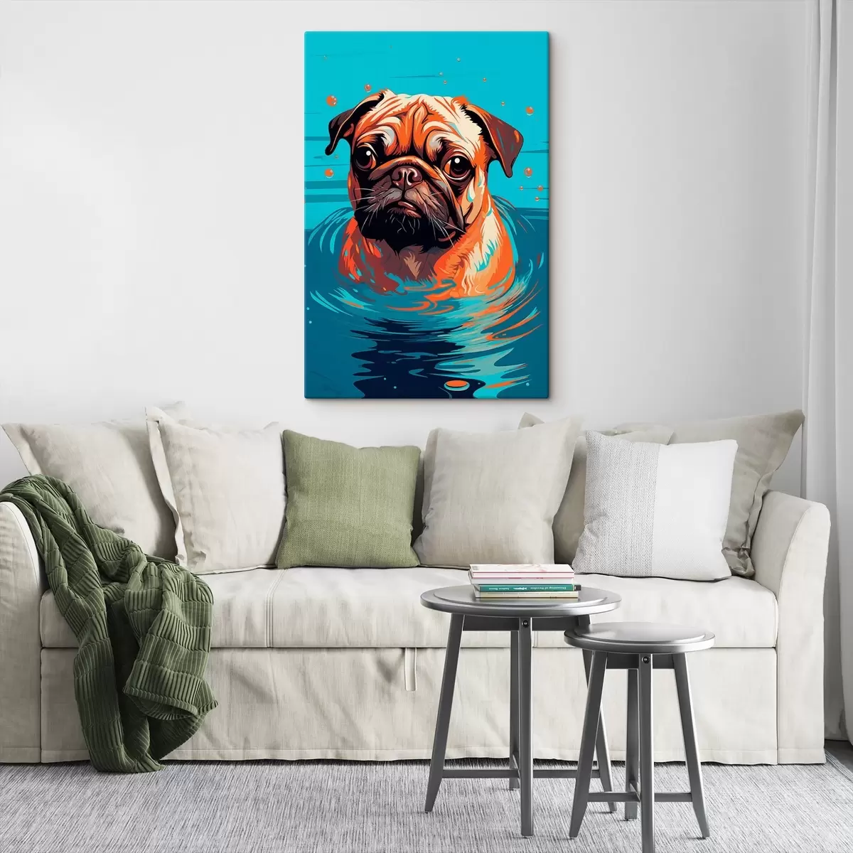 Obraz Stylizowany portret mopsa w wodzie z wyrazistym spojrzeniem Nr s43136