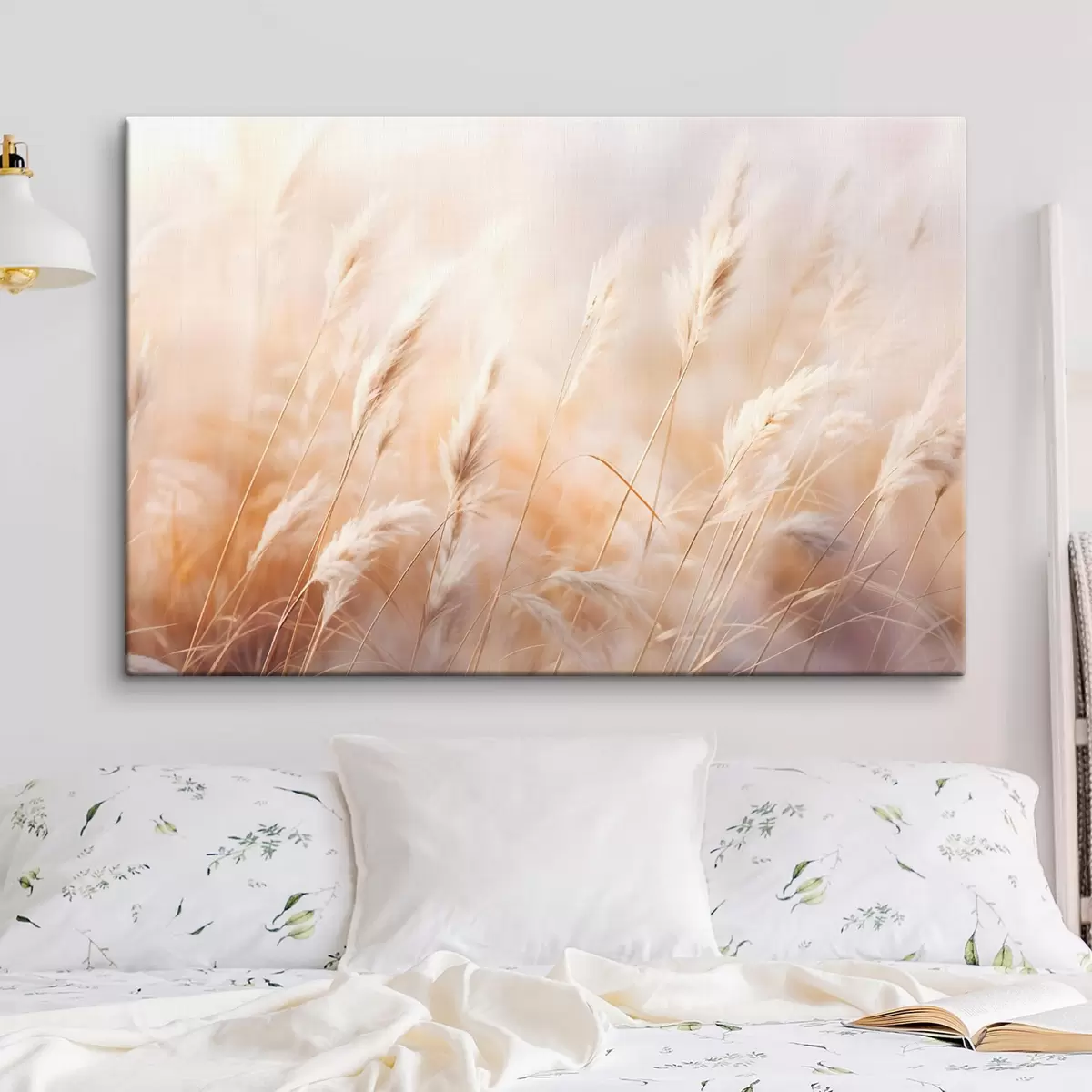 Obraz Trawa pampasowa z miękkim, rozproszonym światłem, tworzącym ciepłe, tło jest mieszanką pastelowych kolorów Nr s43157
