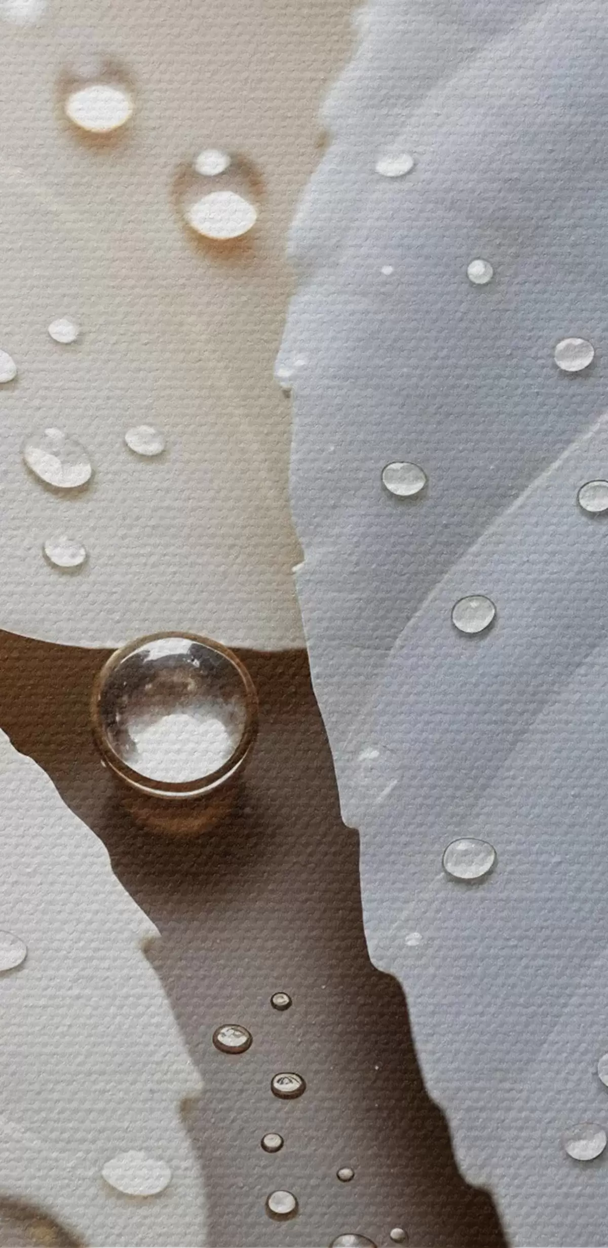 Obraz Zbliżenie na białe liście pokryte kroplami wody, minimalistyczna kompozycja, neutralne tło Nr s43159