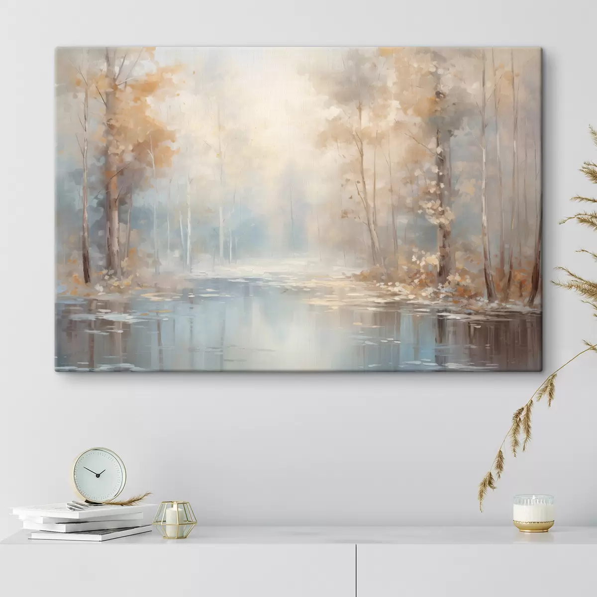 Sprzedajemy obrazy na blejtramie - jest to drewniana rama, na którą naciągnięte jest płótno. Tego obrazu nie trzeba oprawiać; można go powiesić bezpośrednio na ścianie.