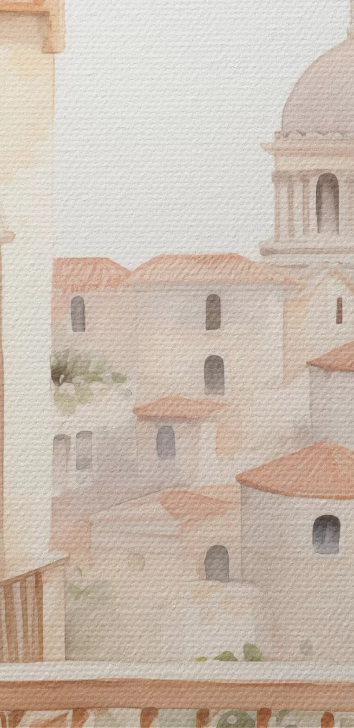 Obraz Estetyczny letni balkon, Hiszpania, stara architektura, blomming, styl akwareli s43180