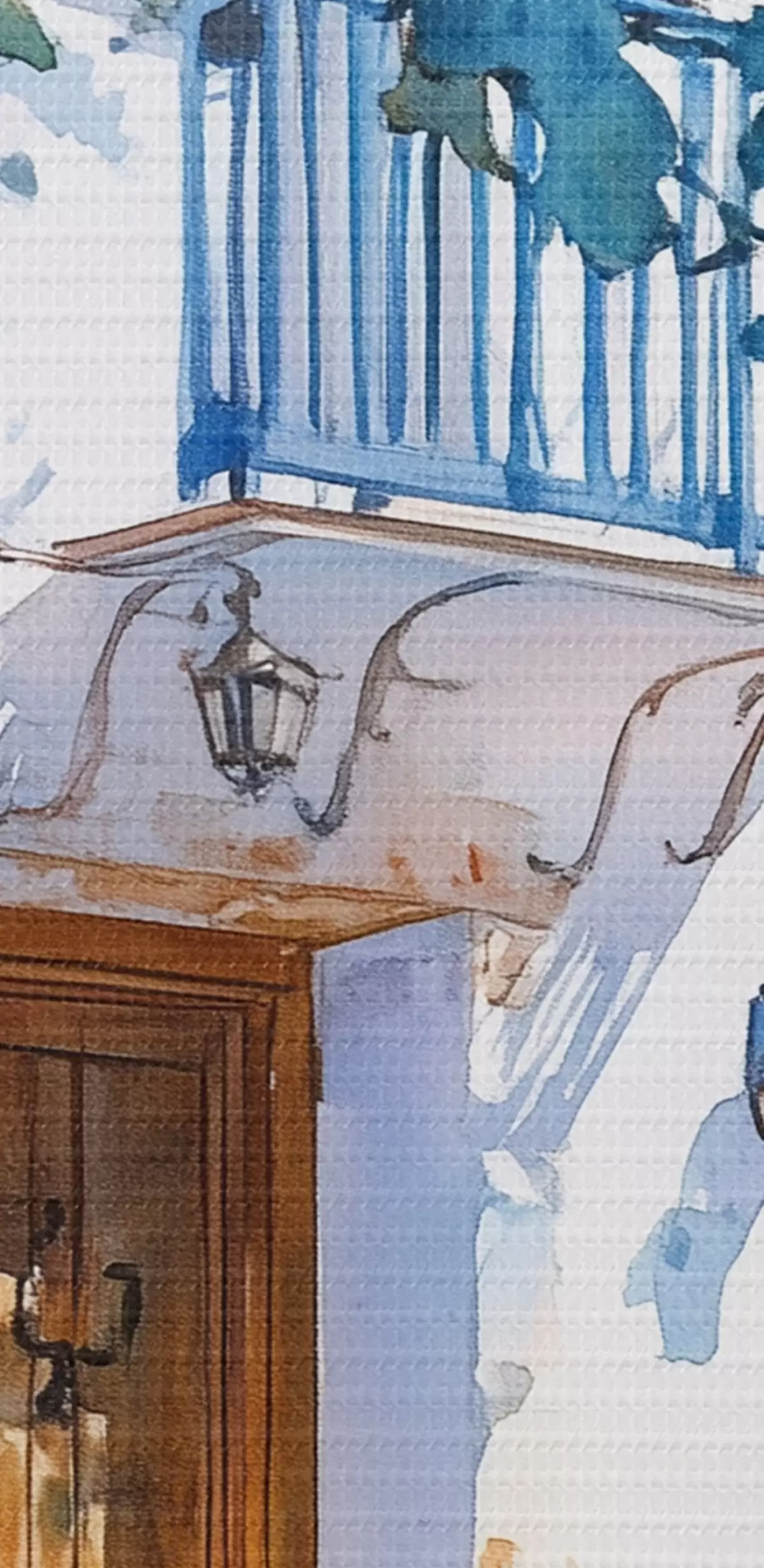 Drobny splot nici na tym płótnie przypomina powierzchnię profesjonalnych płócien artystycznych.