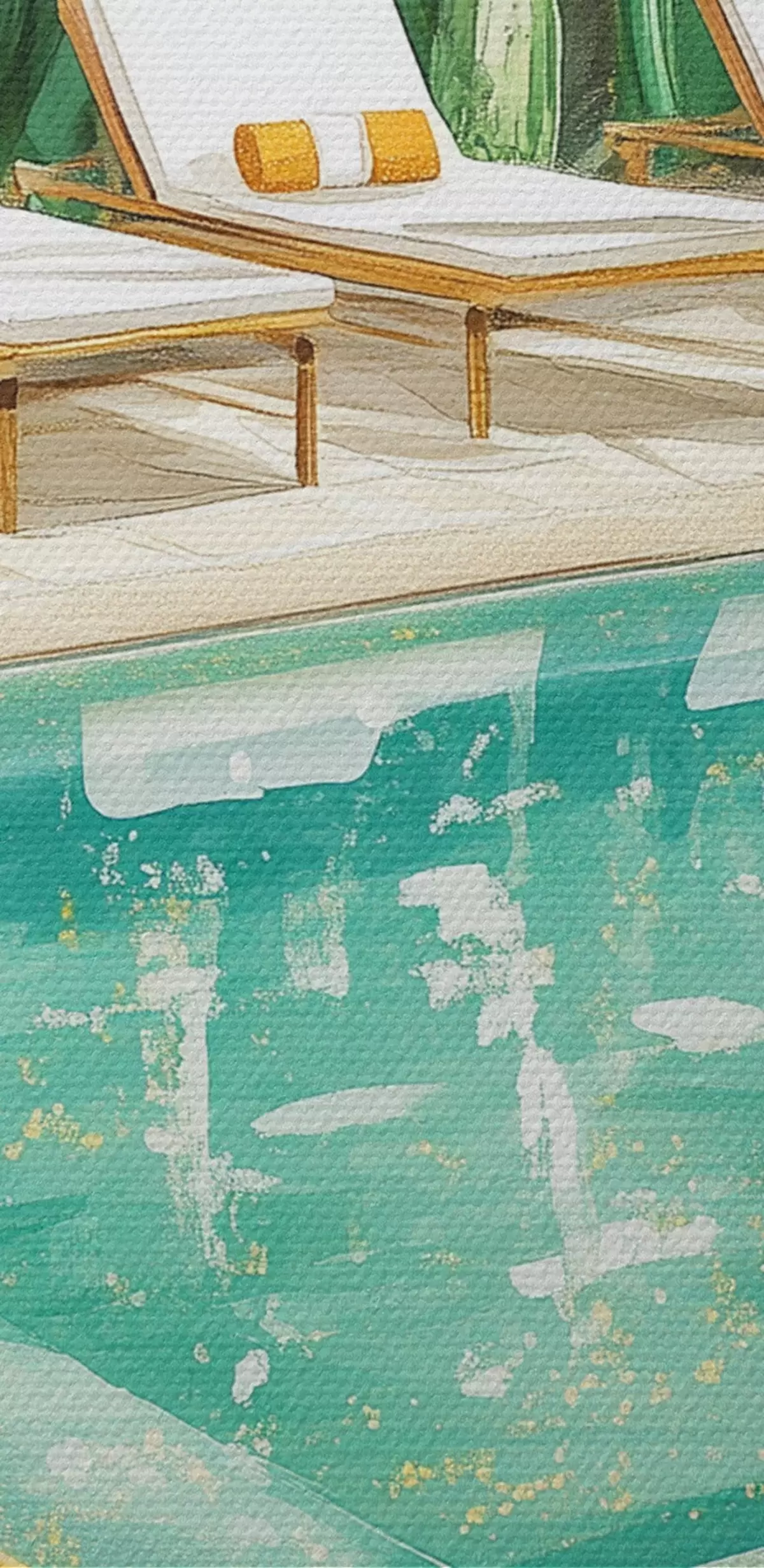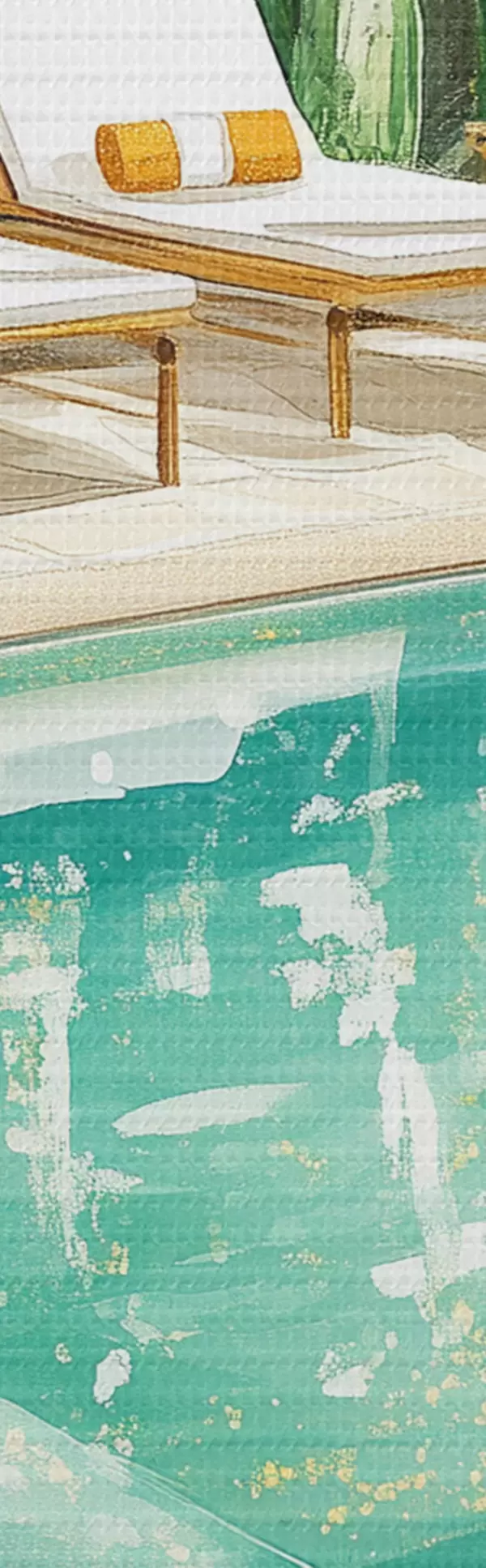 Obraz Tropikalna przyroda, ogród, letni basen, surfing, styl akwareli Nr s43190