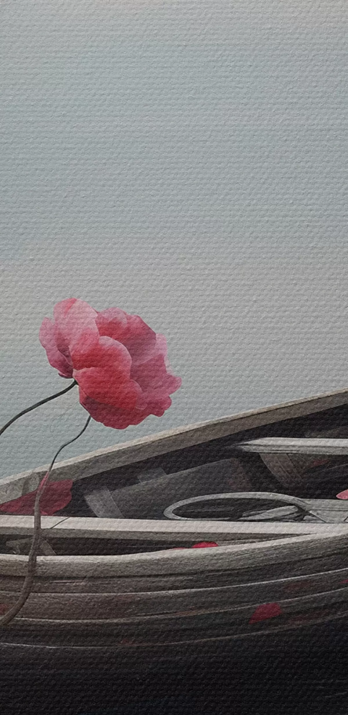 Obraz Łódka i kwiaty maku na jeziorze Nr s43203