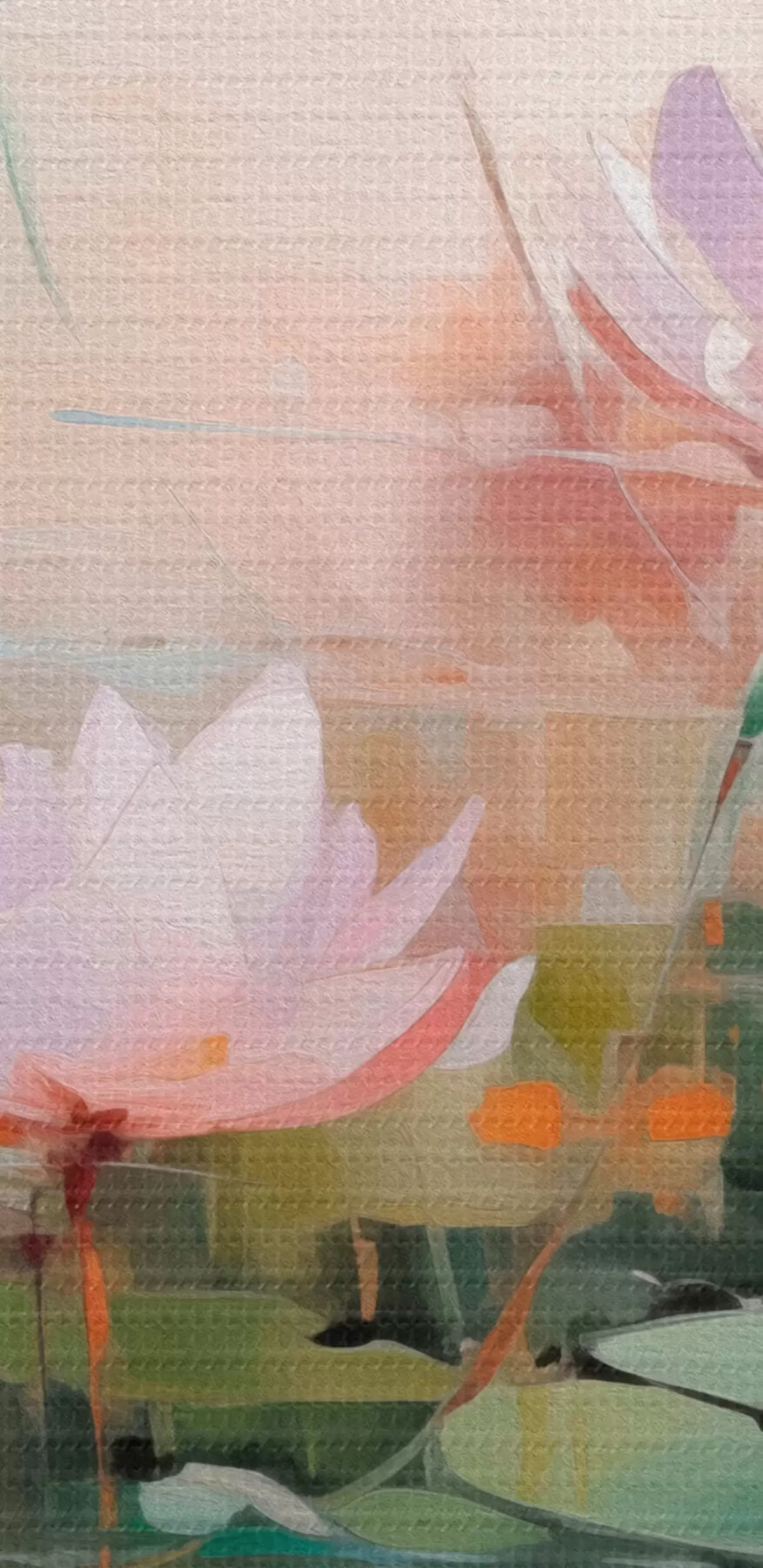 Drobny splot nici na tym płótnie przypomina powierzchnię profesjonalnych płócien artystycznych.