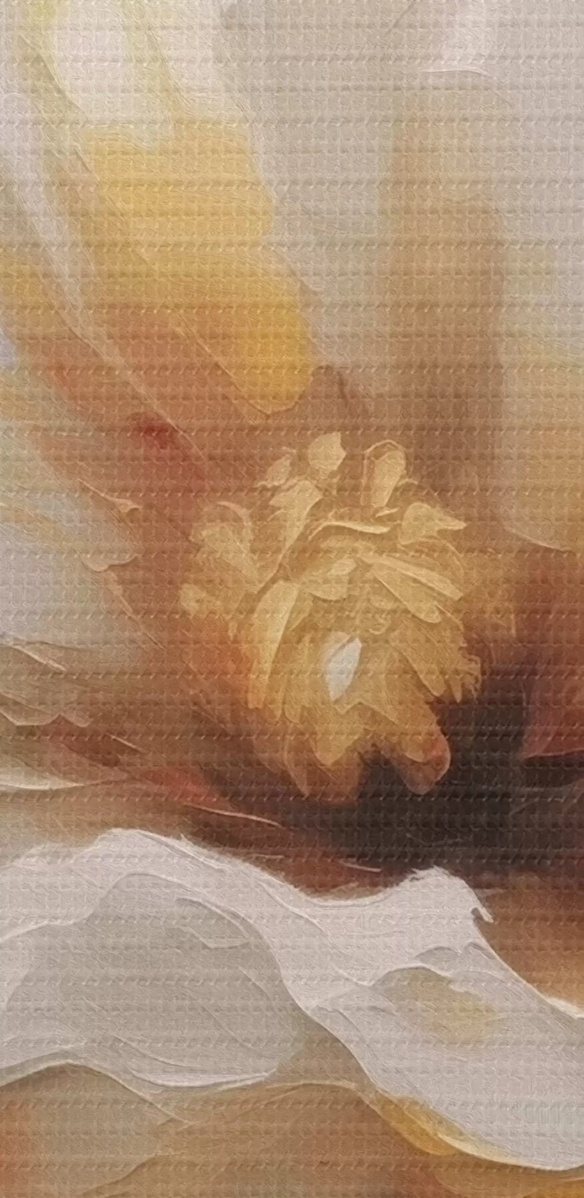 Drobny splot nici na tym płótnie przypomina powierzchnię profesjonalnych płócien artystycznych.