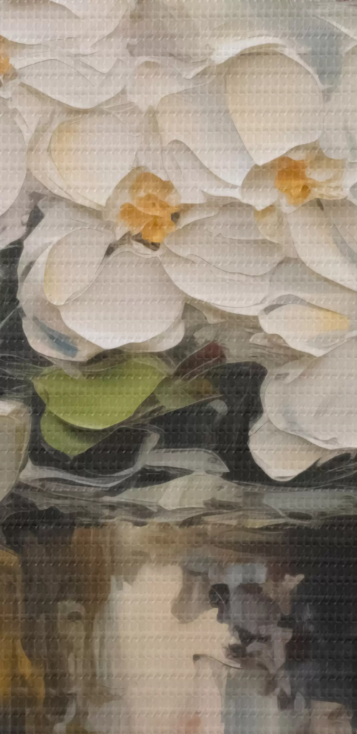 Drobny splot nici na tym płótnie przypomina powierzchnię profesjonalnych płócien artystycznych.