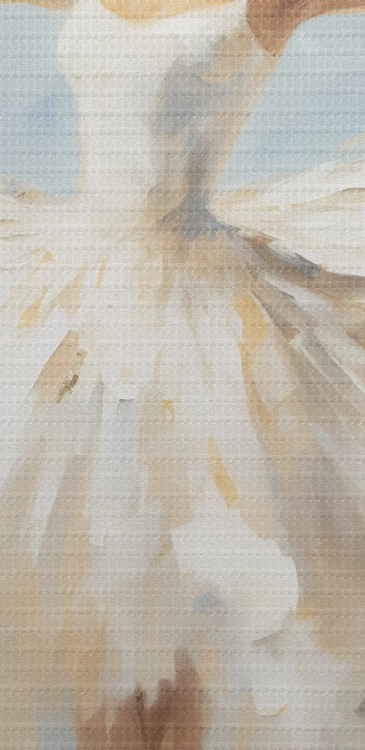 Drobny splot nici na tym płótnie przypomina powierzchnię profesjonalnych płócien artystycznych.