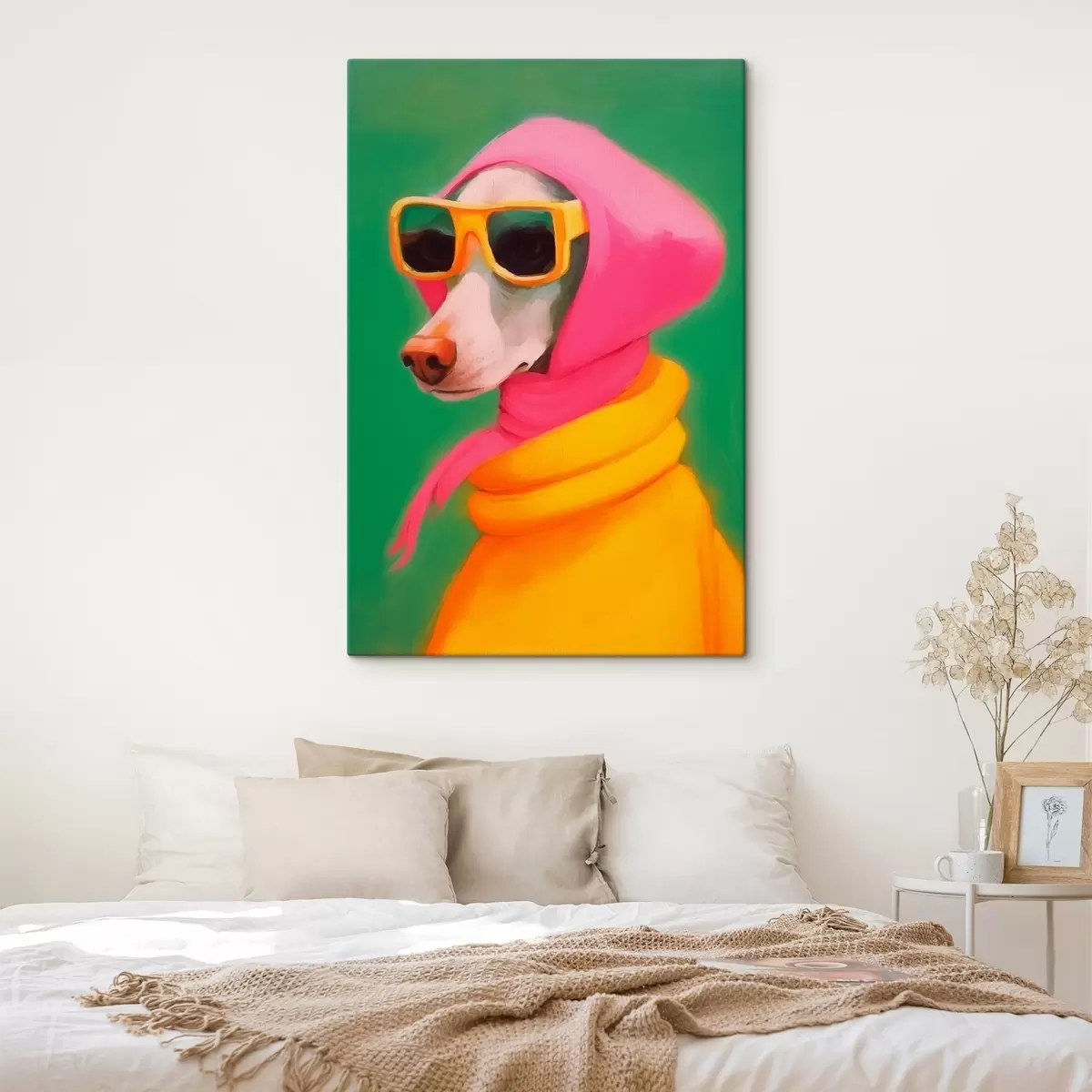Obraz Stylowy pies w jasnych ubraniach Nr s43265