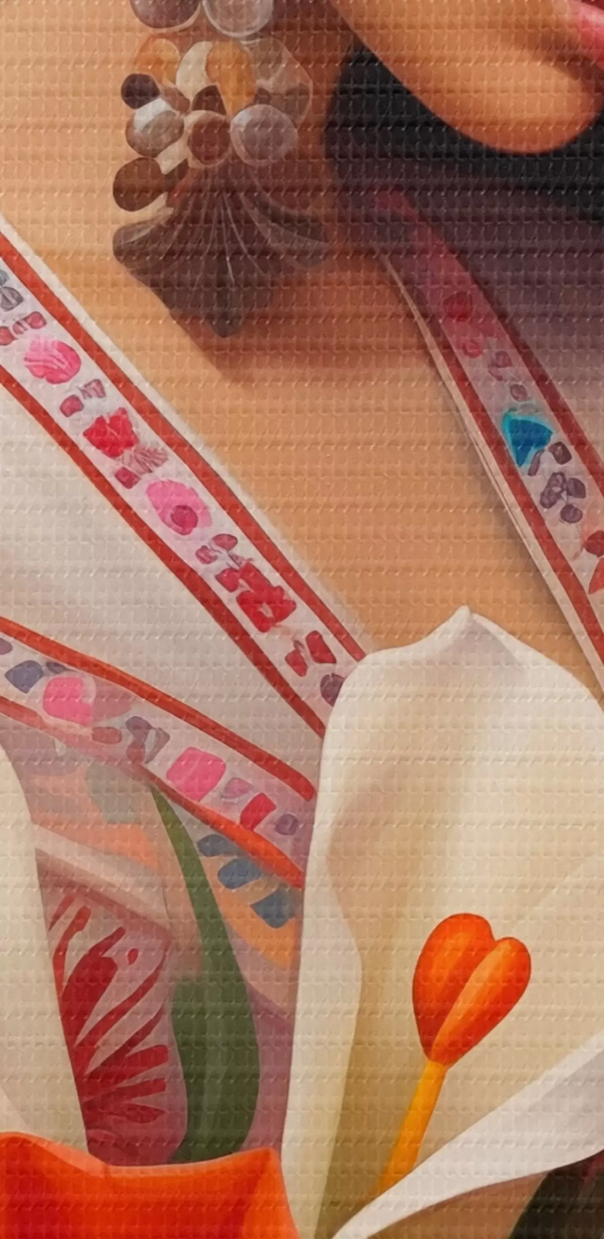 Drobny splot nici na tym płótnie przypomina powierzchnię profesjonalnych płócien artystycznych.