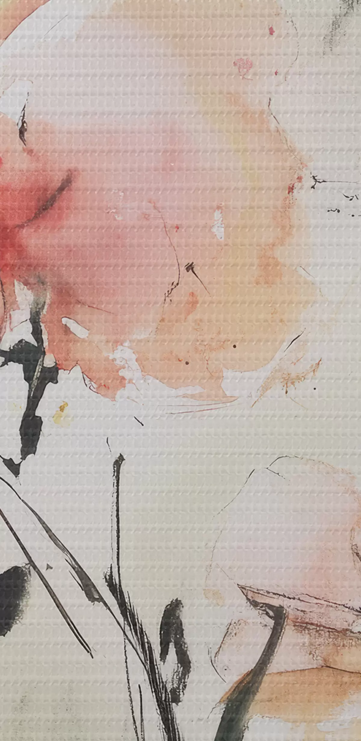 Drobny splot nici na tym płótnie przypomina powierzchnię profesjonalnych płócien artystycznych.