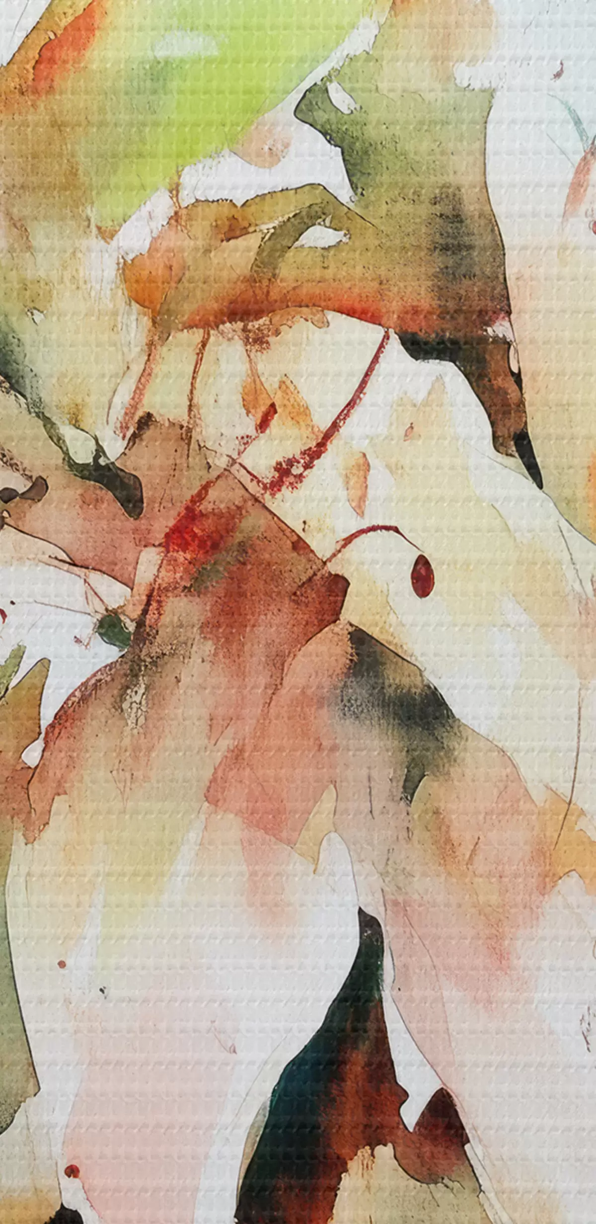 Drobny splot nici na tym płótnie przypomina powierzchnię profesjonalnych płócien artystycznych.