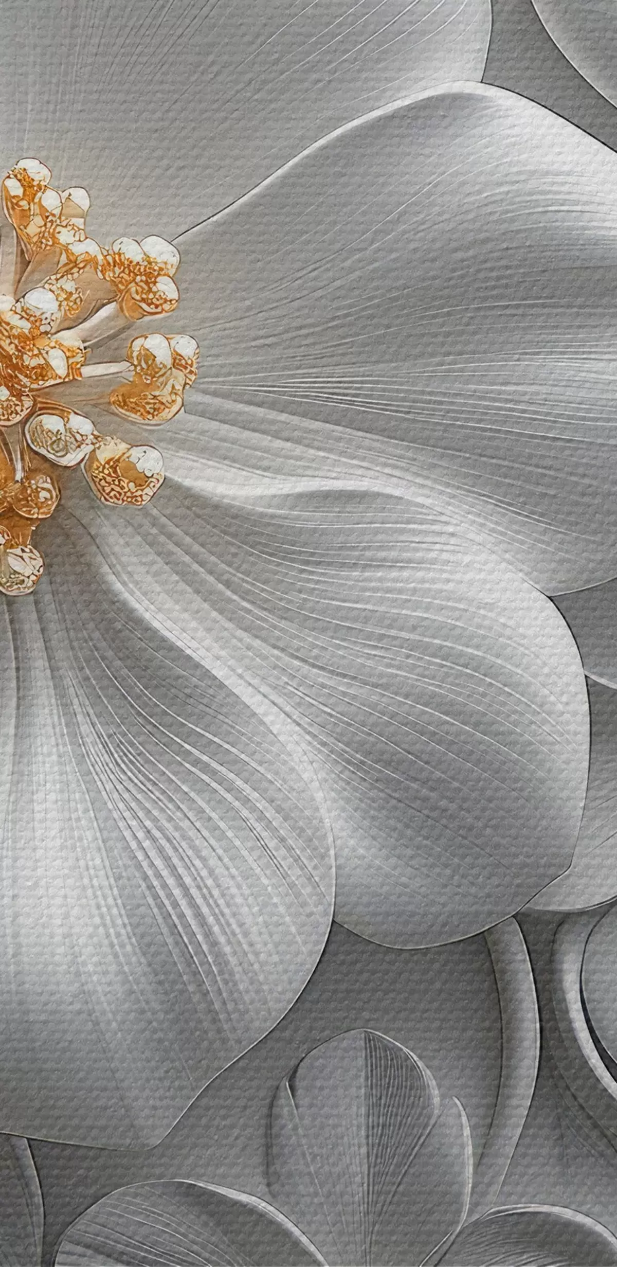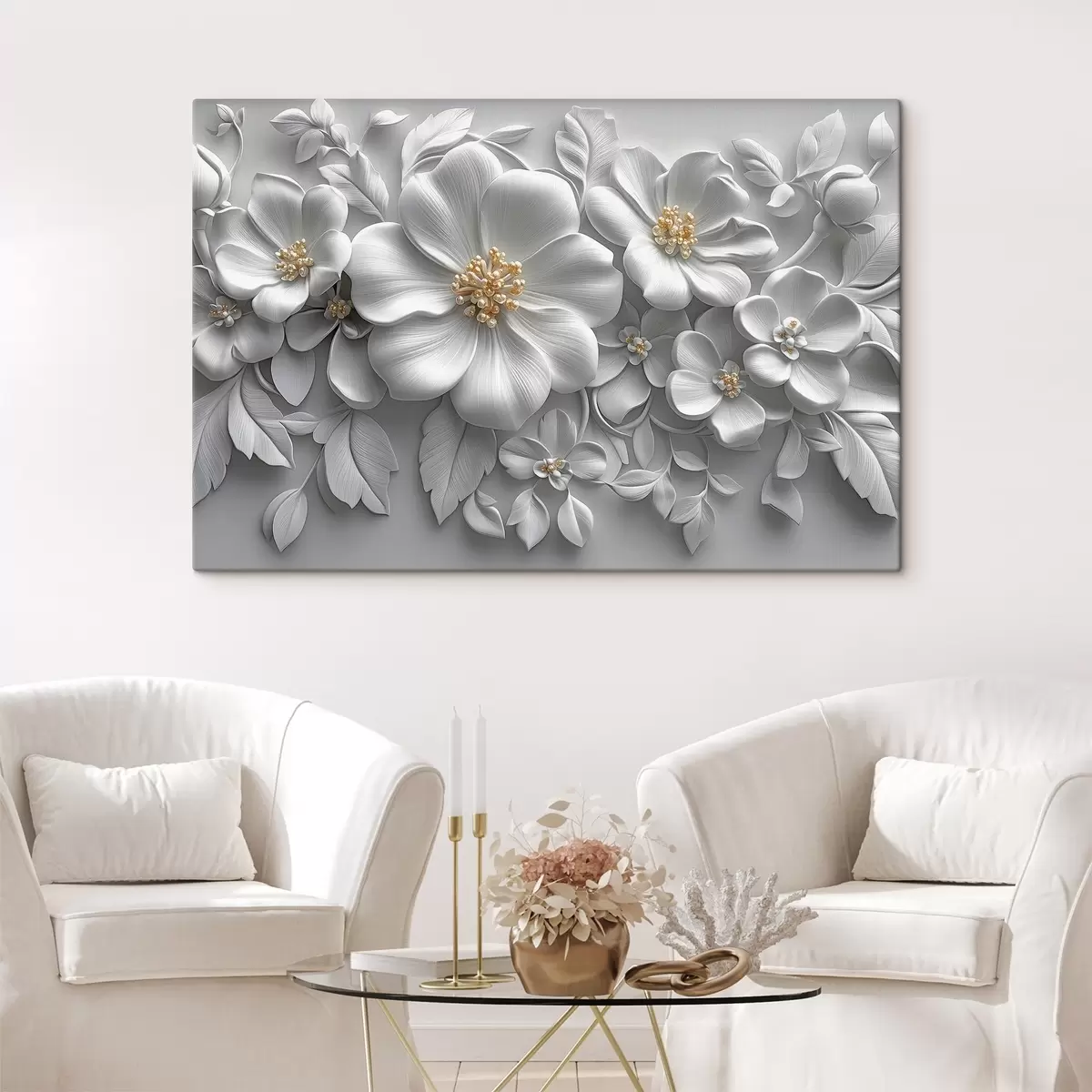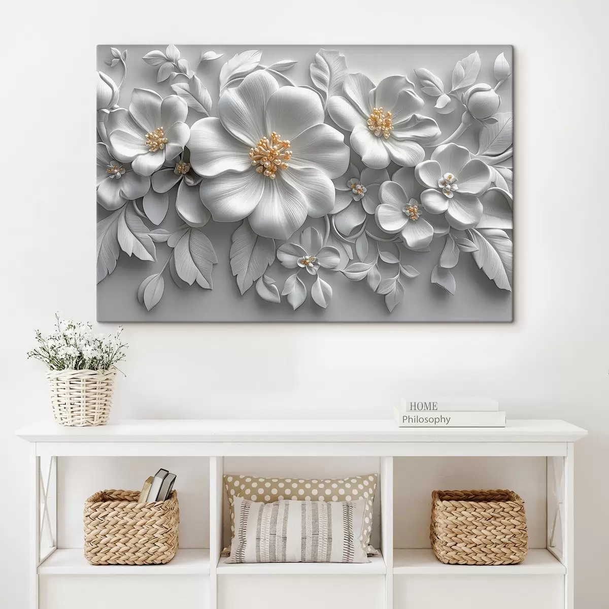 Obraz szare kwiaty 3D z żółtym akcentem Nr s43310