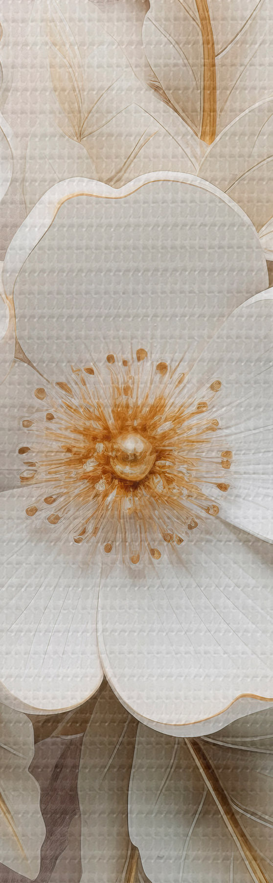 Obraz białe kwiaty 3D w klasycznym stylu z żółtym akcentem s43313