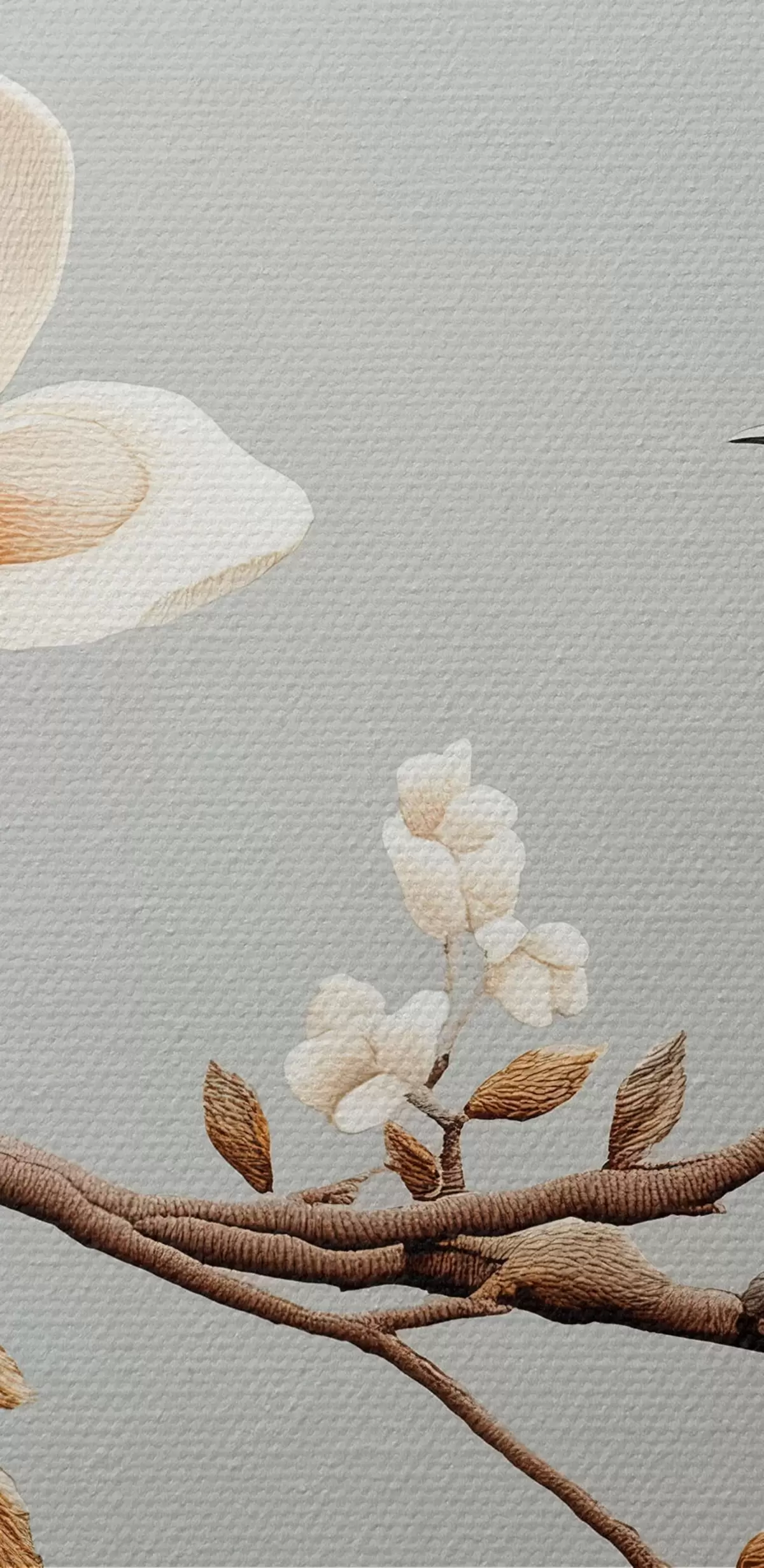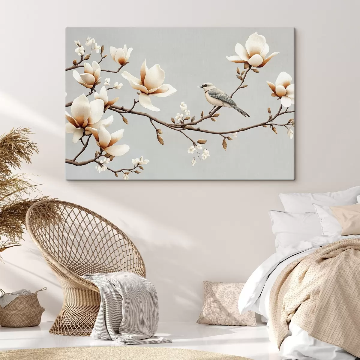 Obraz Ptak na gałęzi z magnoliami w delikatnych pastelowych kolorach Nr s43320