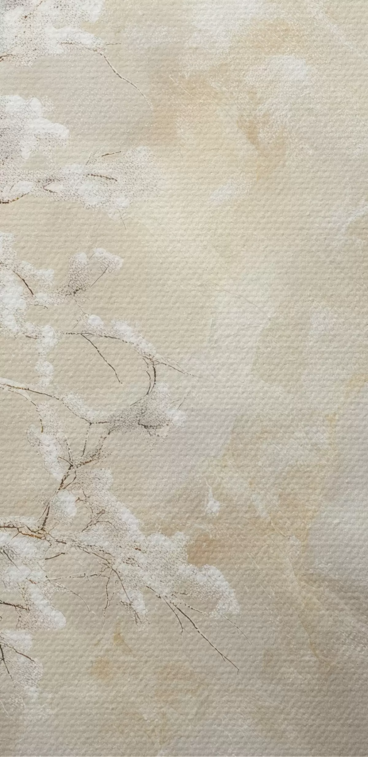 Drobny splot nici na tym płótnie przypomina powierzchnię profesjonalnych płócien artystycznych.