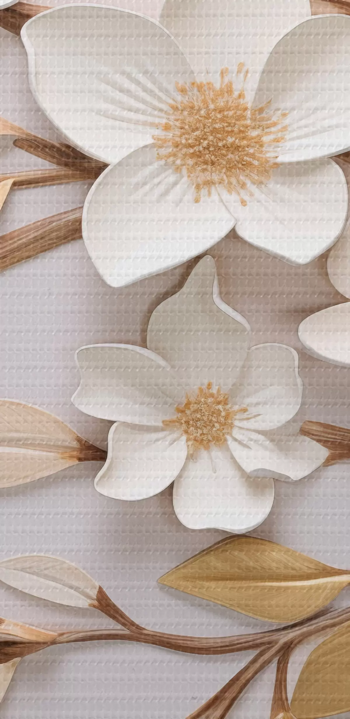 Obraz Białe kwiaty w stylu reliefowego fresku z żółtymi akcentami s43331