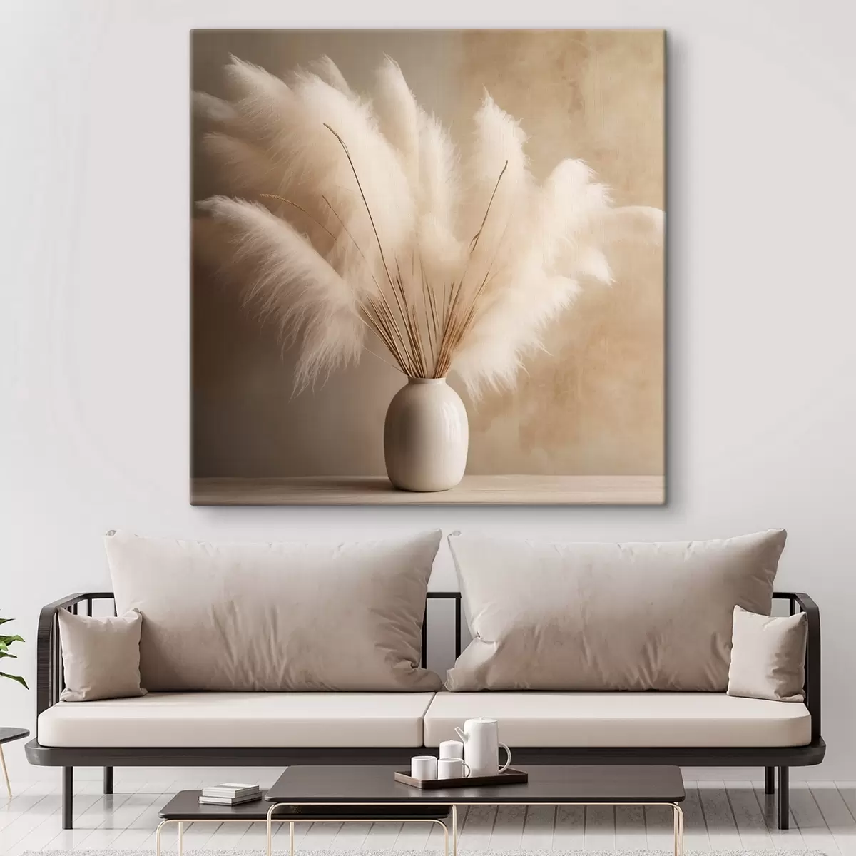 Obraz Puszyste gałązki trzciny w wazonie na stole s43338