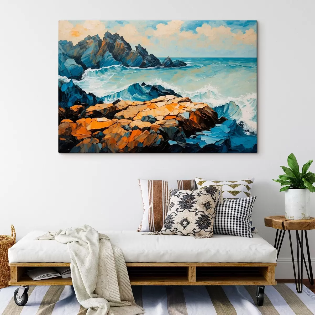 Sprzedajemy obrazy na blejtramie - jest to drewniana rama, na którą naciągnięte jest płótno. Tego obrazu nie trzeba oprawiać; można go powiesić bezpośrednio na ścianie.