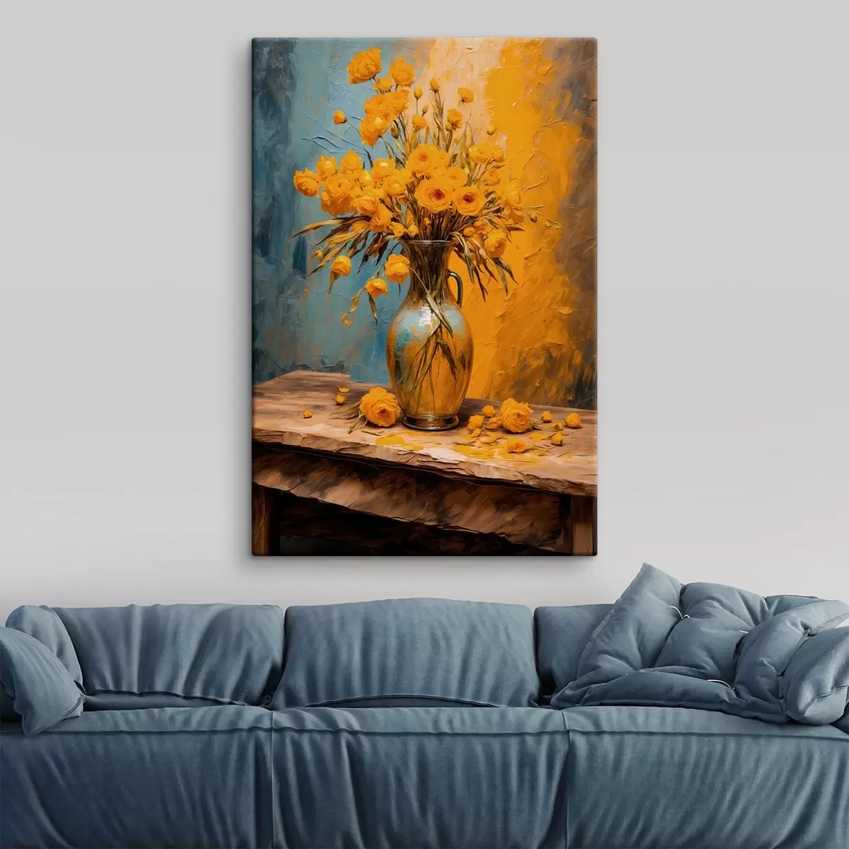 Obraz Żółte kwiaty w wazonie na stole Nr s43462