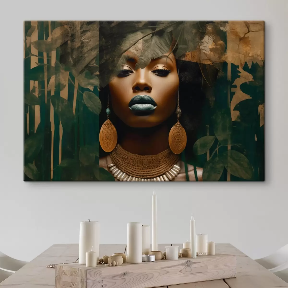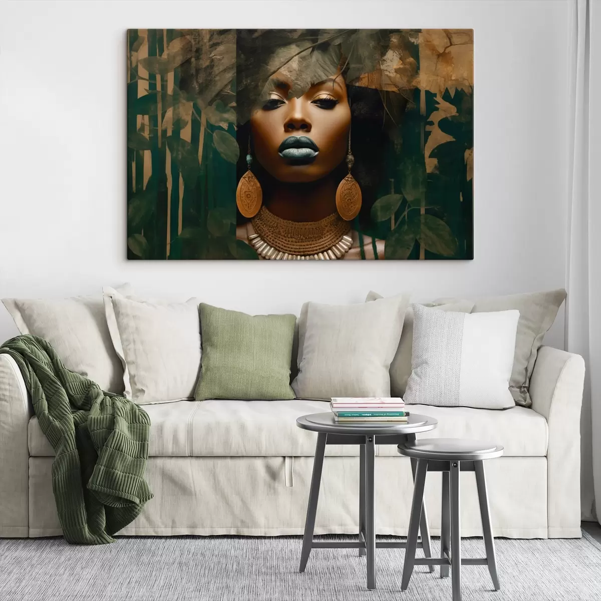 Obraz Twarz dziewczyny na abstrakcyjnym tle lasu Nr s43466