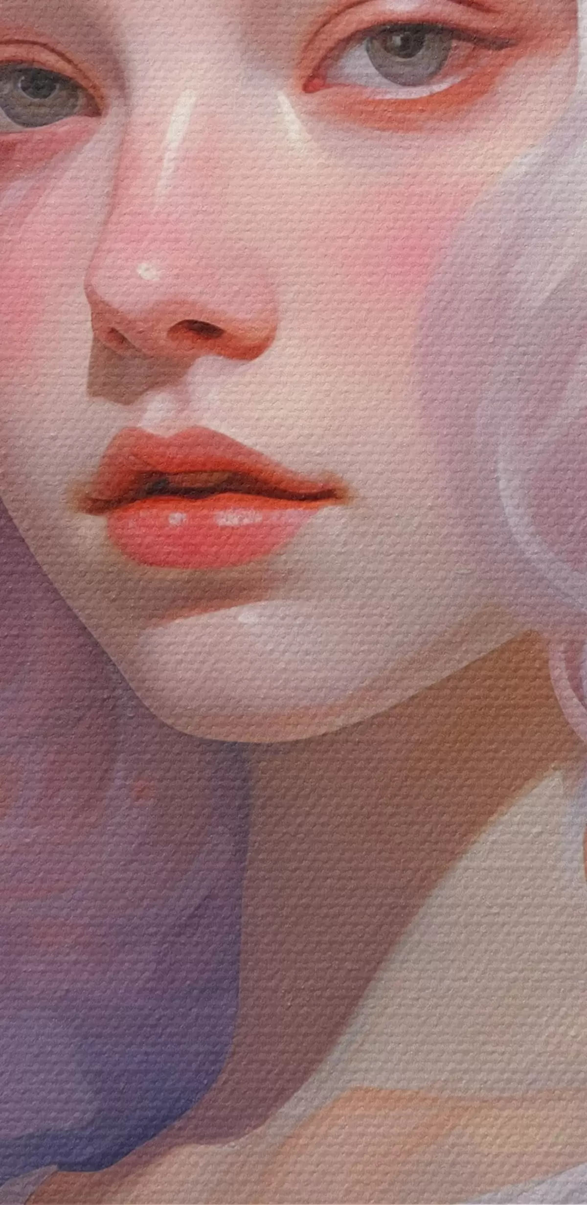Drobny splot nici na tym płótnie przypomina powierzchnię profesjonalnych płócien artystycznych.