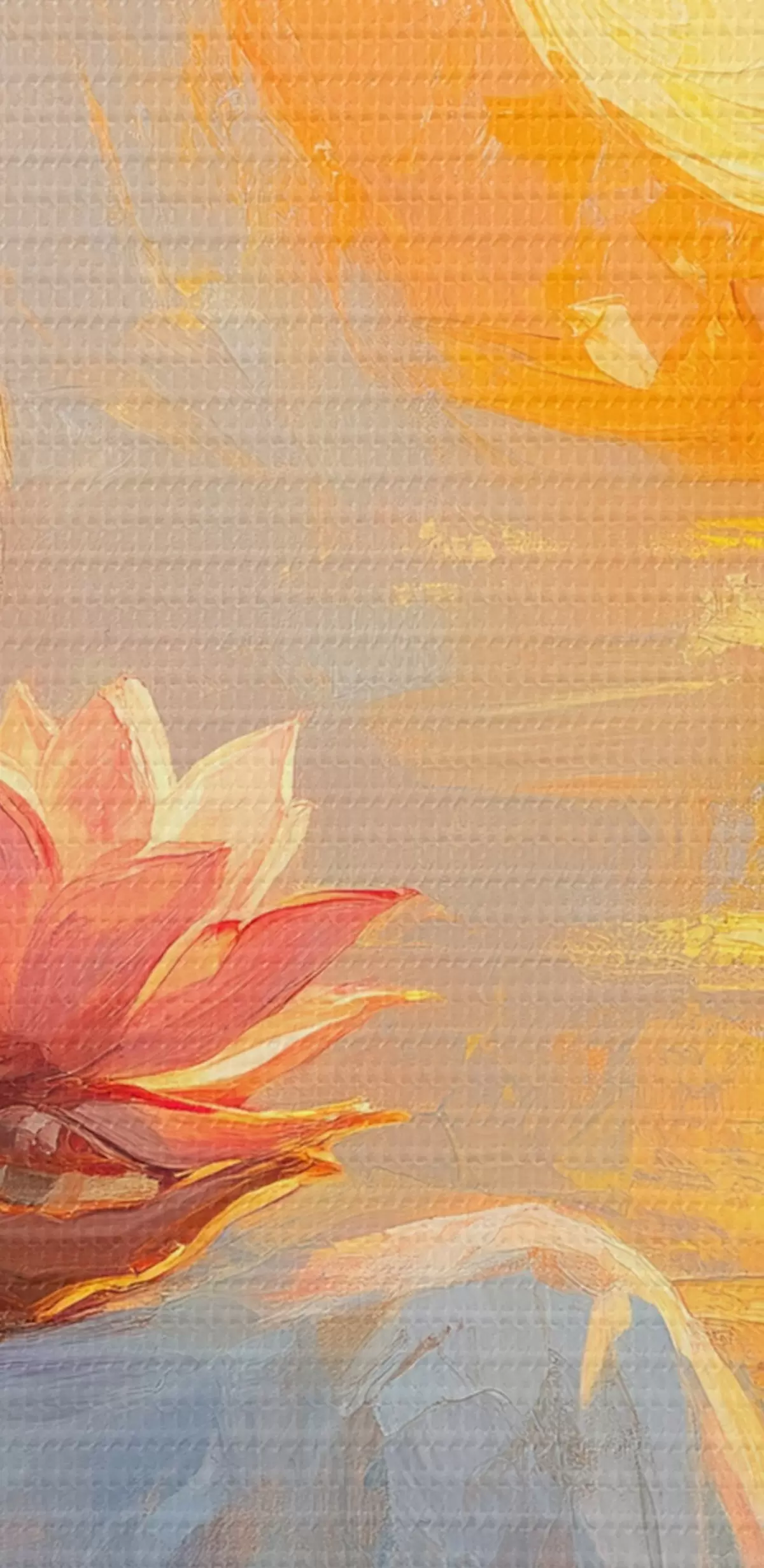 Obraz Kobieta z kwiatem lotosu na zachodzie słońca, biały ptak, rysunek w stylu olejnym Nr s43501