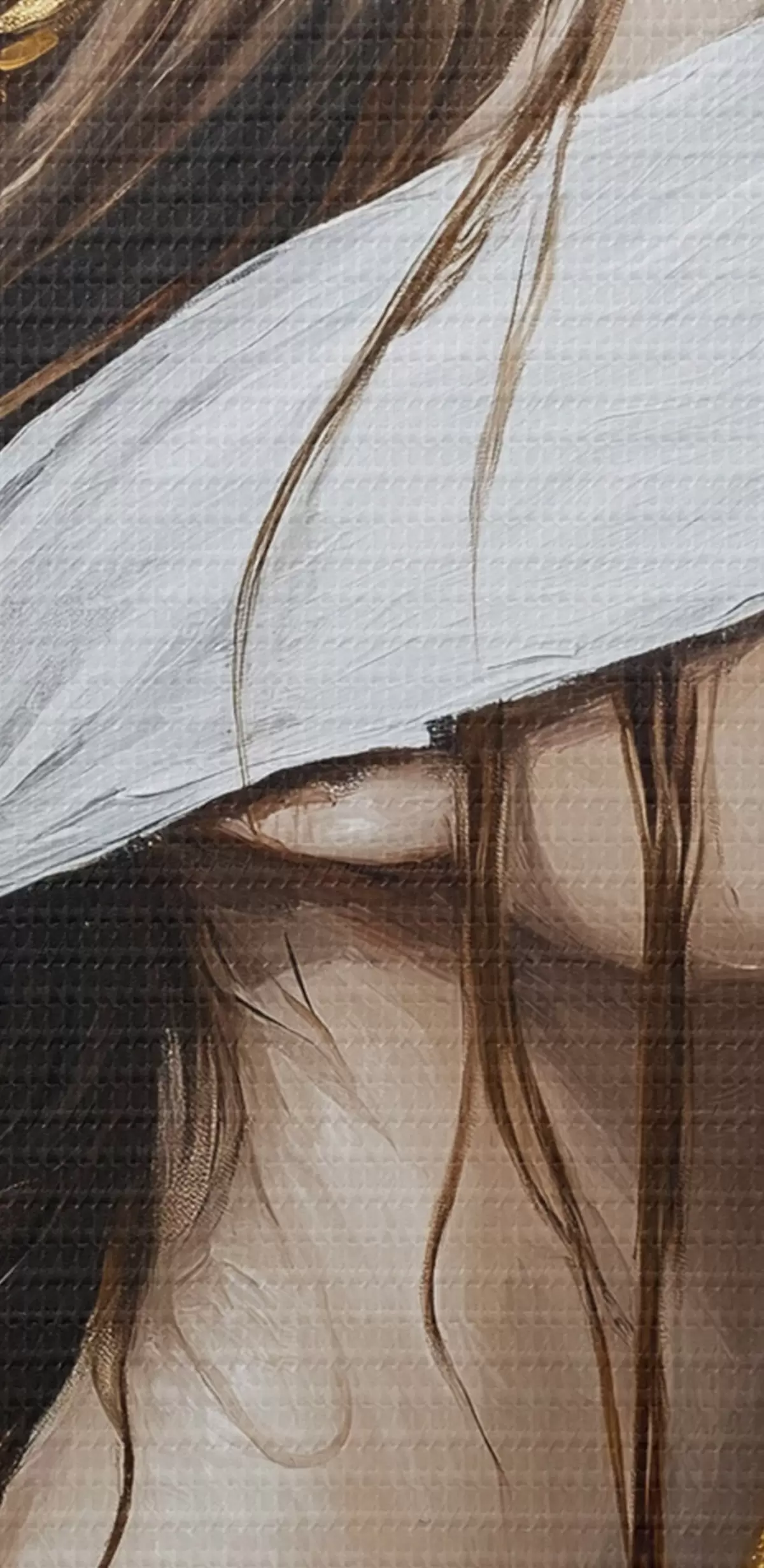 Drobny splot nici na tym płótnie przypomina powierzchnię profesjonalnych płócien artystycznych.