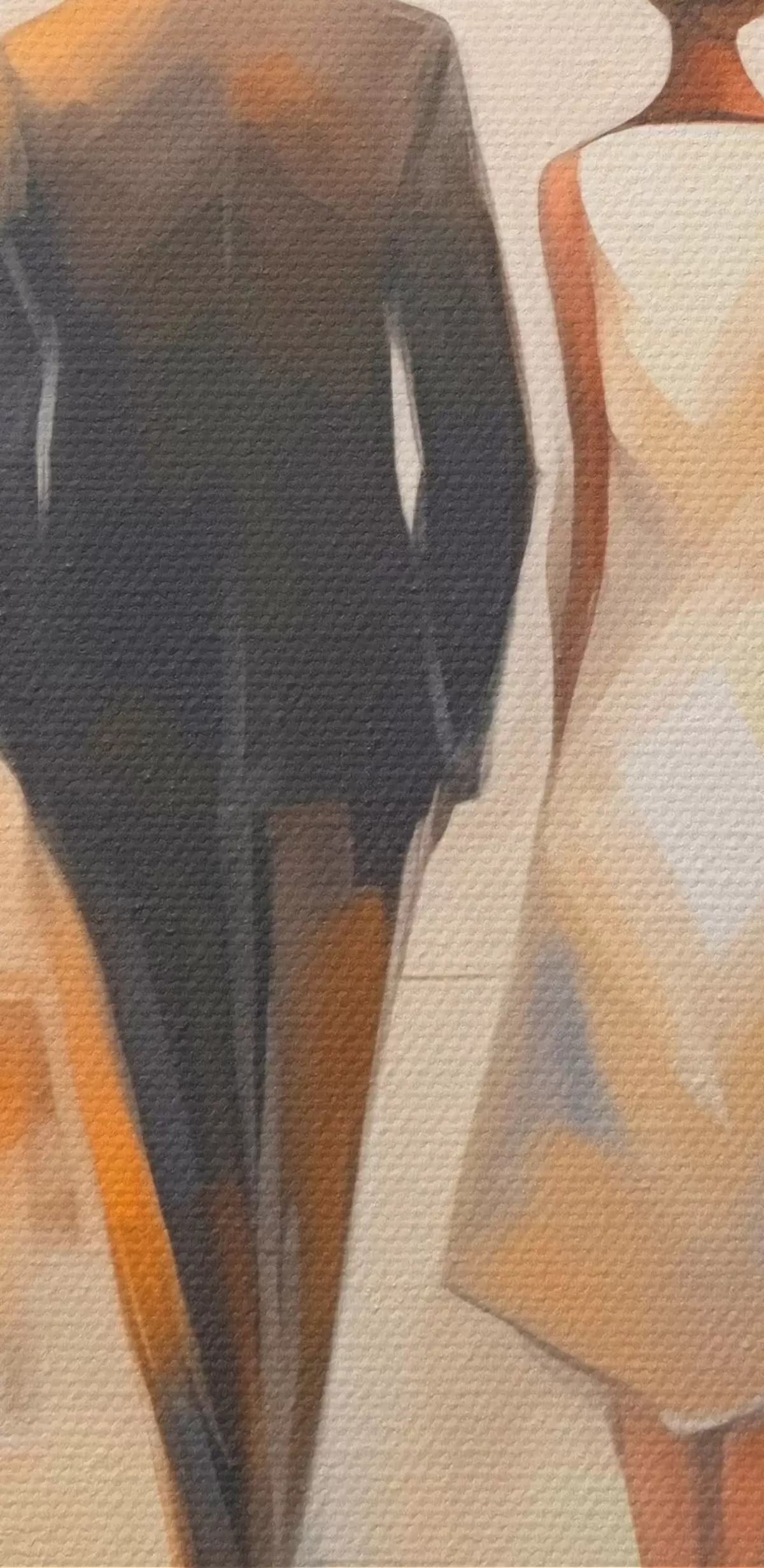 Obraz Abstrakcja z sylwetkami miasta i dwiema postaciami Nr s43516