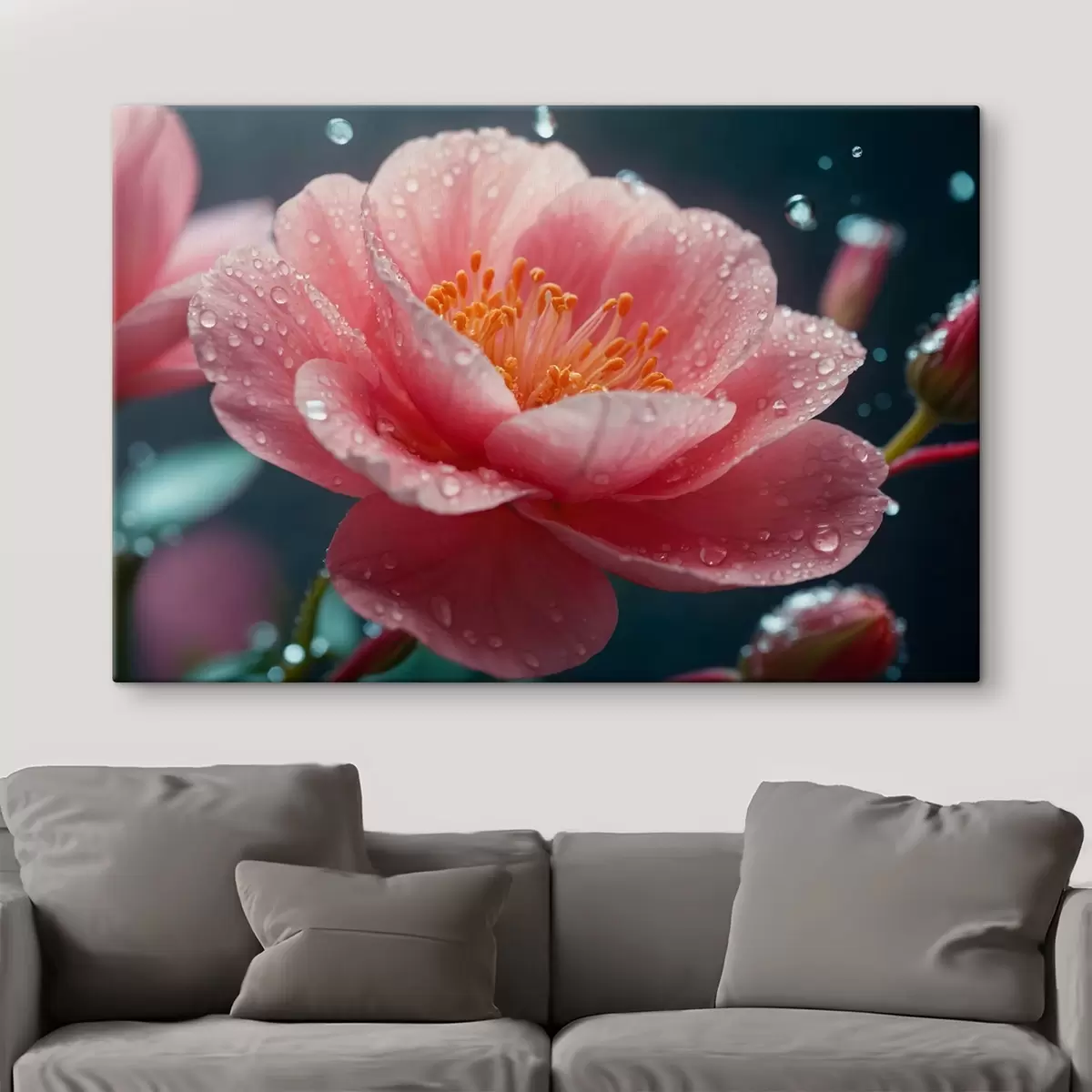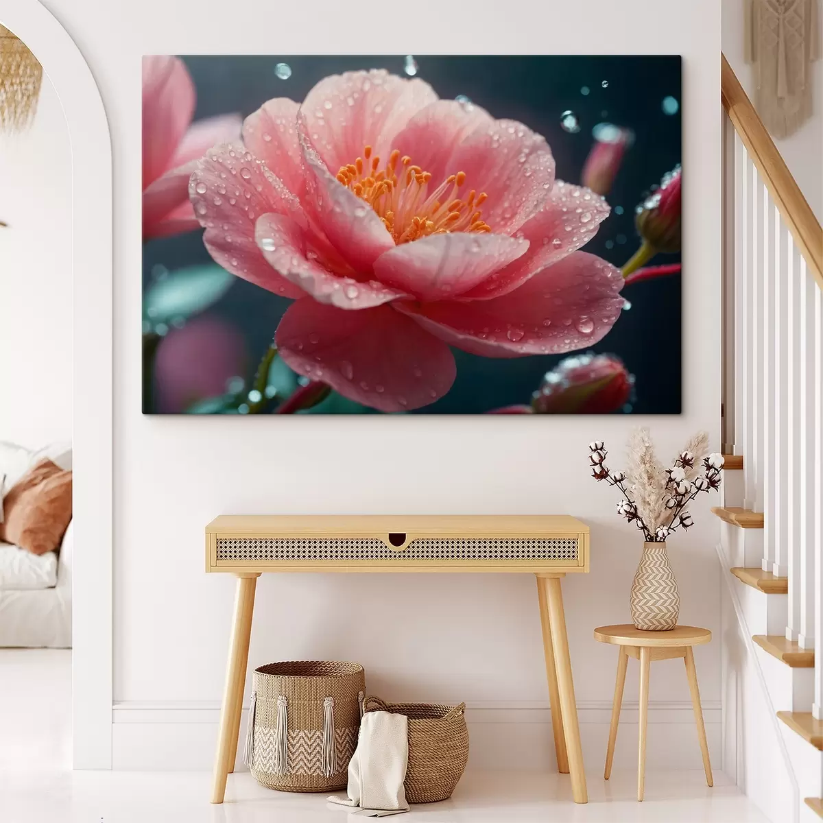 Obraz Hiperrealistyczny kwiat z kroplami rosy Nr s43873
