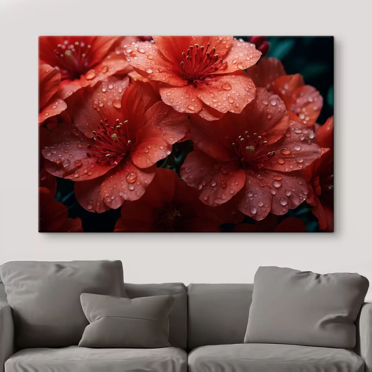 Obraz Czerwone kwiaty z kroplami rosy Nr s43878