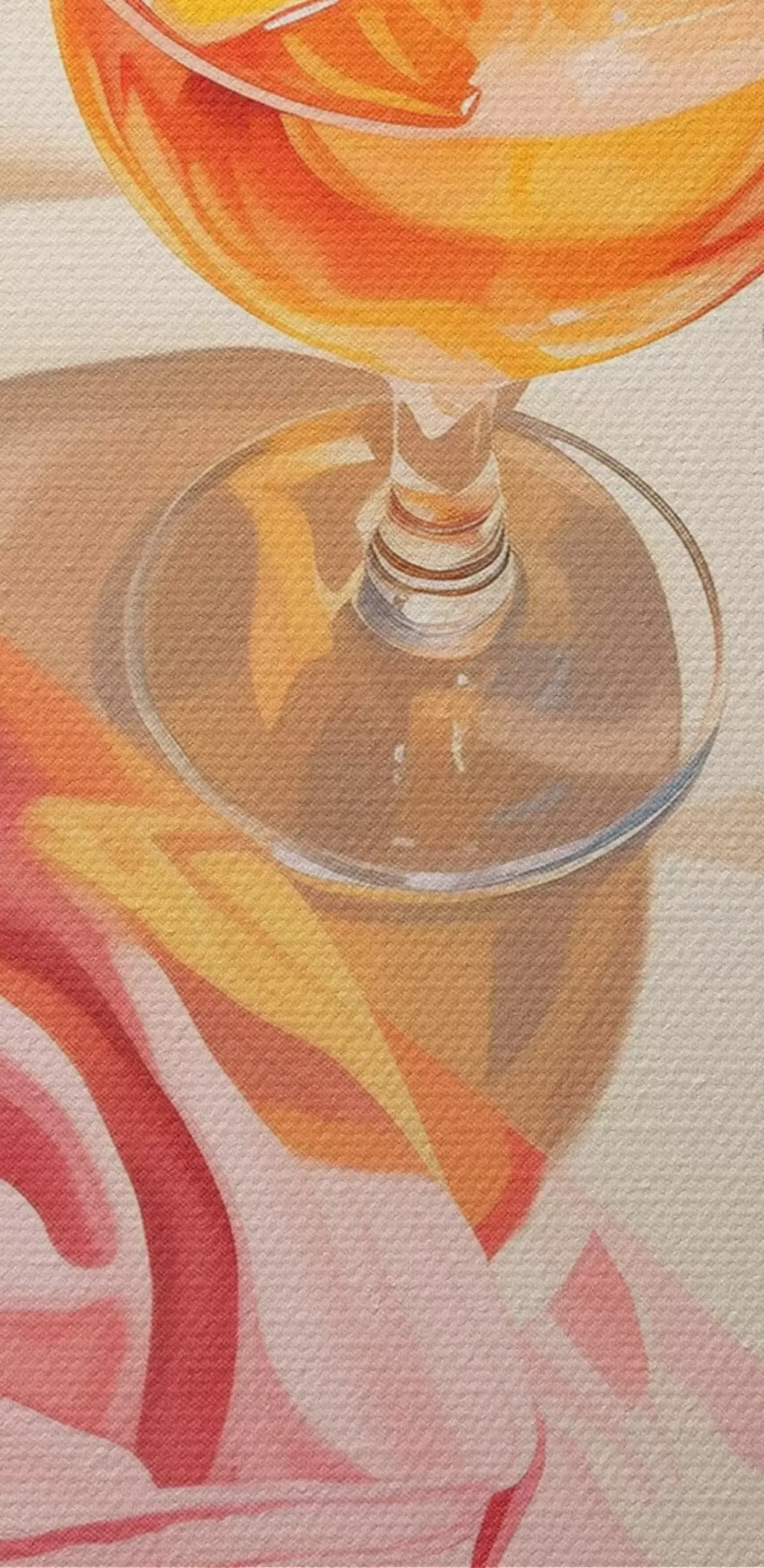 Obraz Lato, kieliszki z szampanem, zielone rośliny, ciepłe kolory s43885