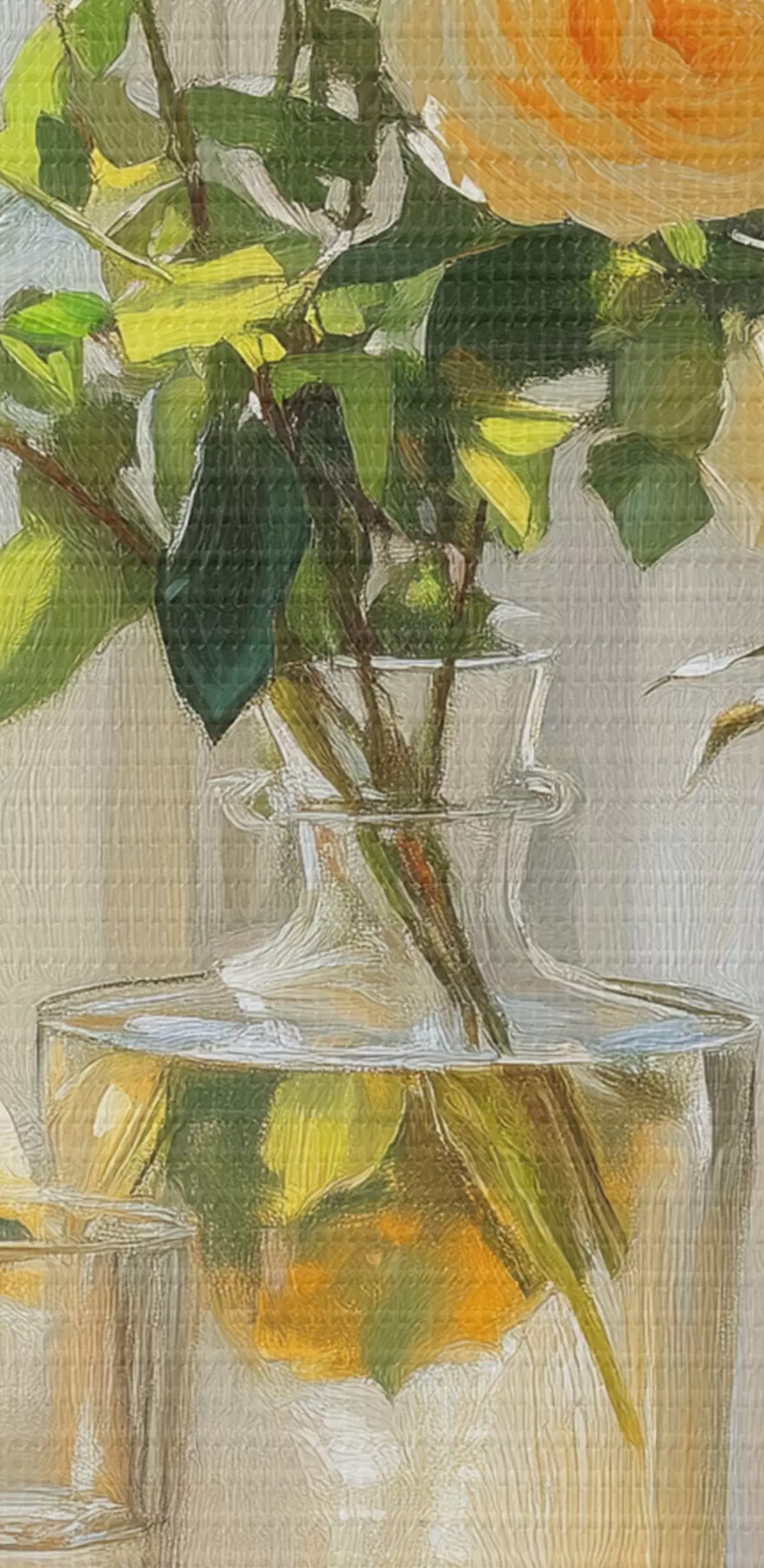 Obraz Róże w wazonach, rysunek olejny, delikatne światło słoneczne, cytryny, wiosna Nr s43887