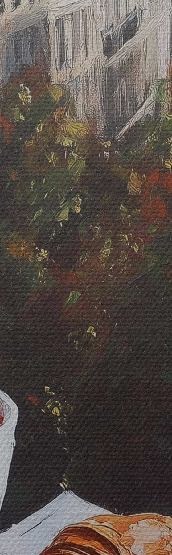 Obraz Paryski poranek, kawa z rogalikami, widok na miasto, rysunek olejny Nr s43892