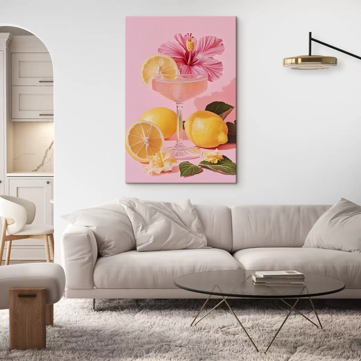 Obraz Różowy koktajl z kwiatem hibiskusa, cytrynami, realizm s43893