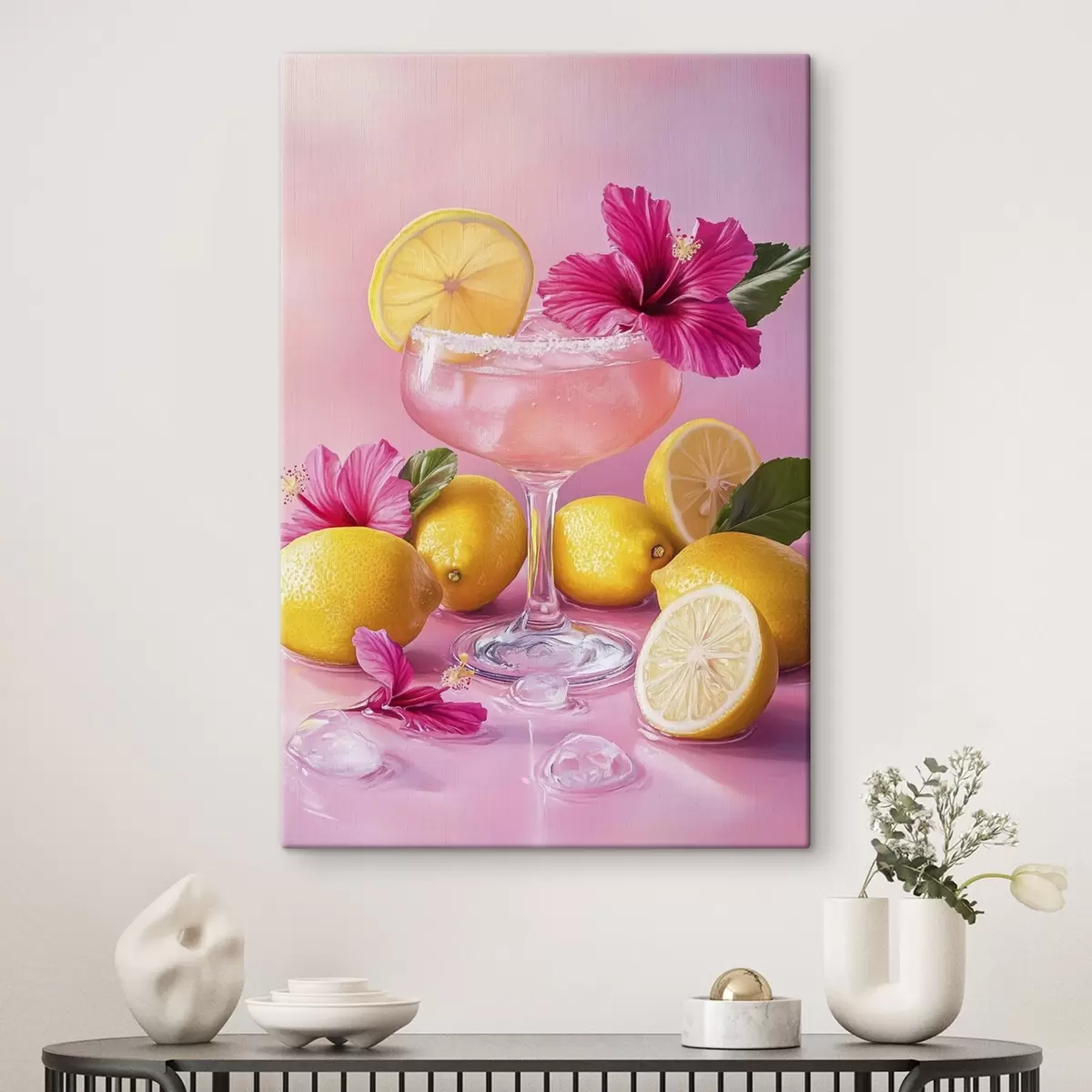 Obraz Letni koktajl z kwiatami i cytrynami, różowe kolory, styl akwareli Nr s43895