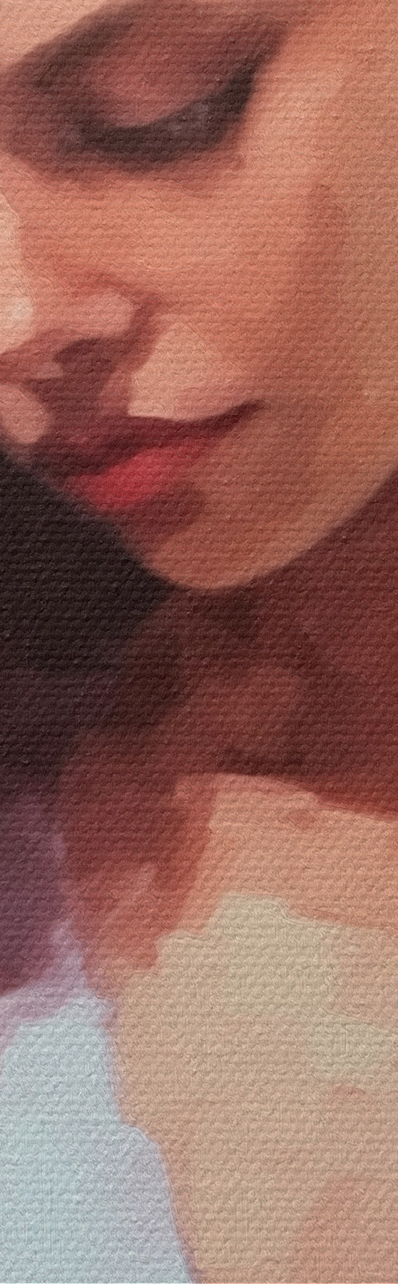 Drobny splot nici na tym płótnie przypomina powierzchnię profesjonalnych płócien artystycznych.