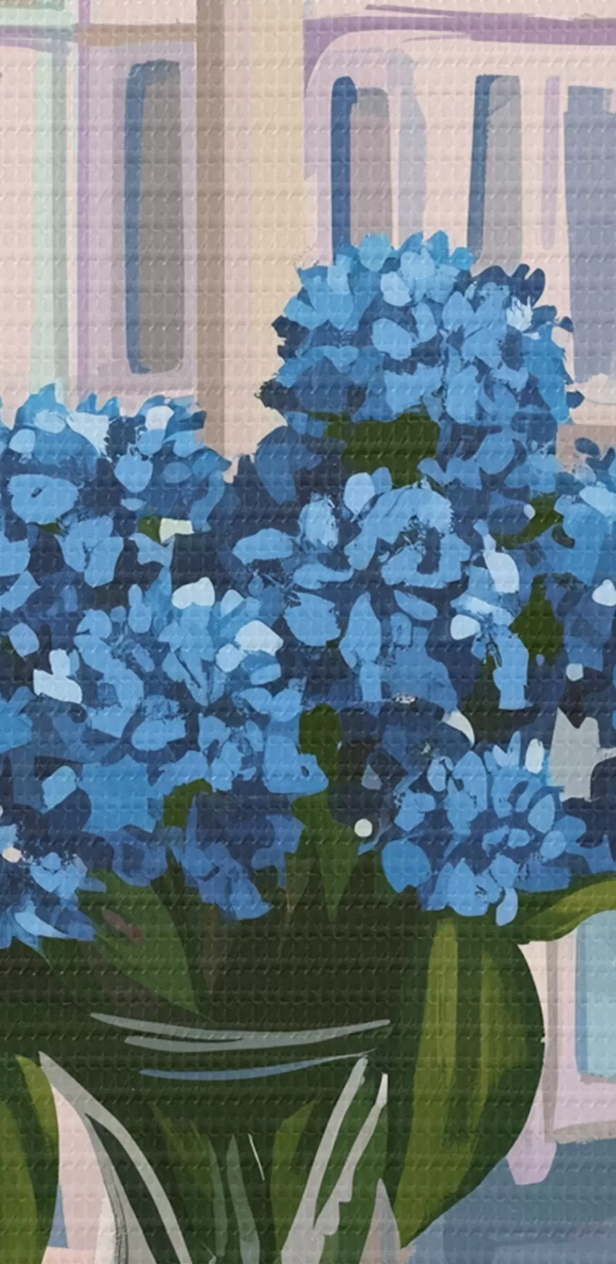 Drobny splot nici na tym płótnie przypomina powierzchnię profesjonalnych płócien artystycznych.