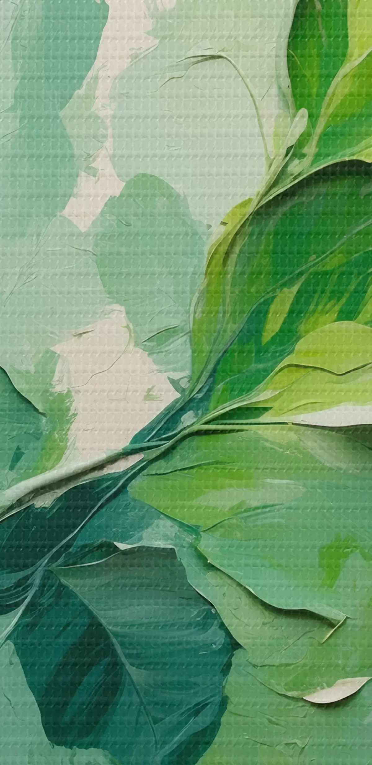 Obraz Gałąź z zielonymi liśćmi w stylu malarstwa olejnego Nr s44075