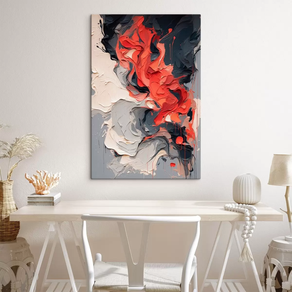 Obraz Abstrakcyjny obraz olejny w kolorach czerwieni, czerni i szarości Nr s44079