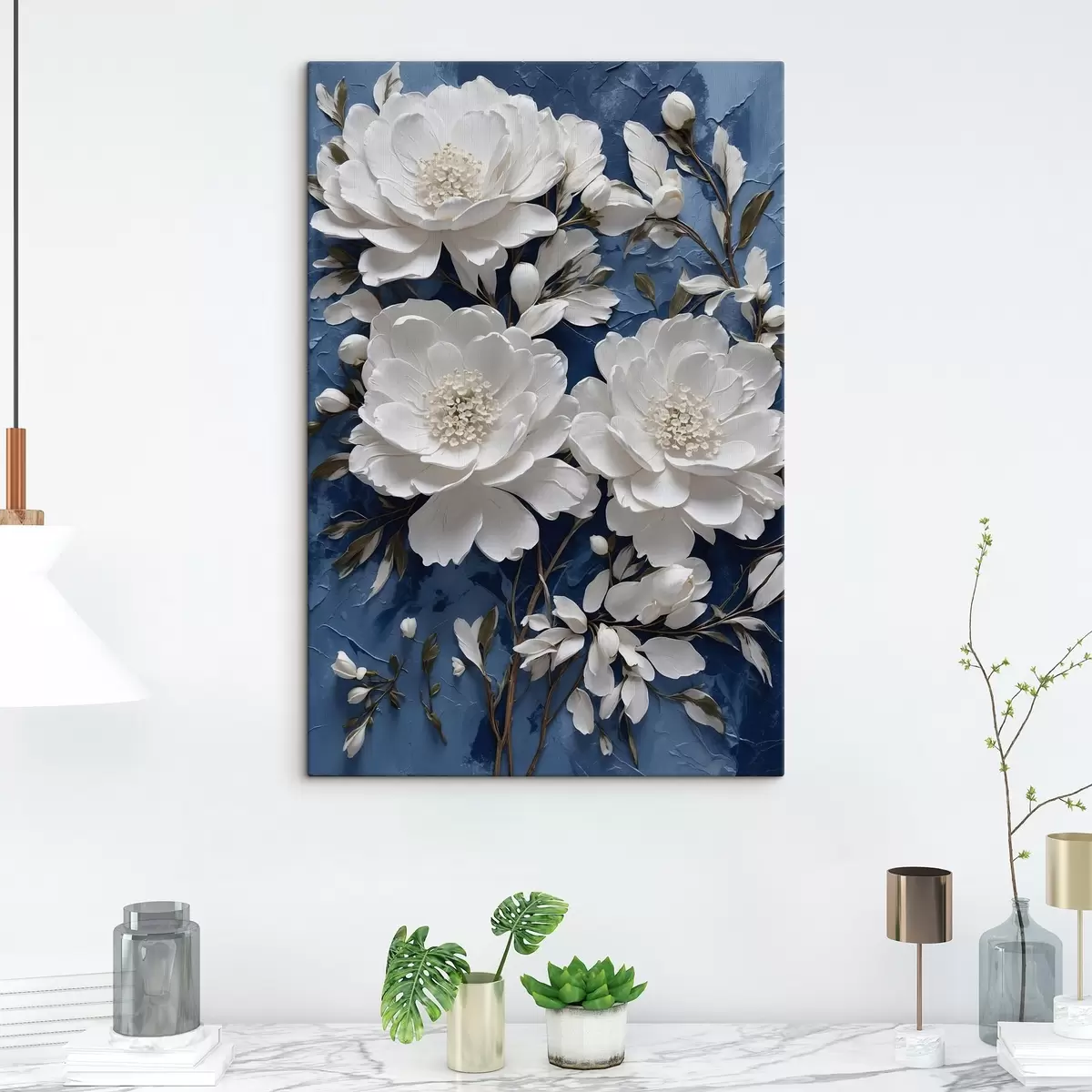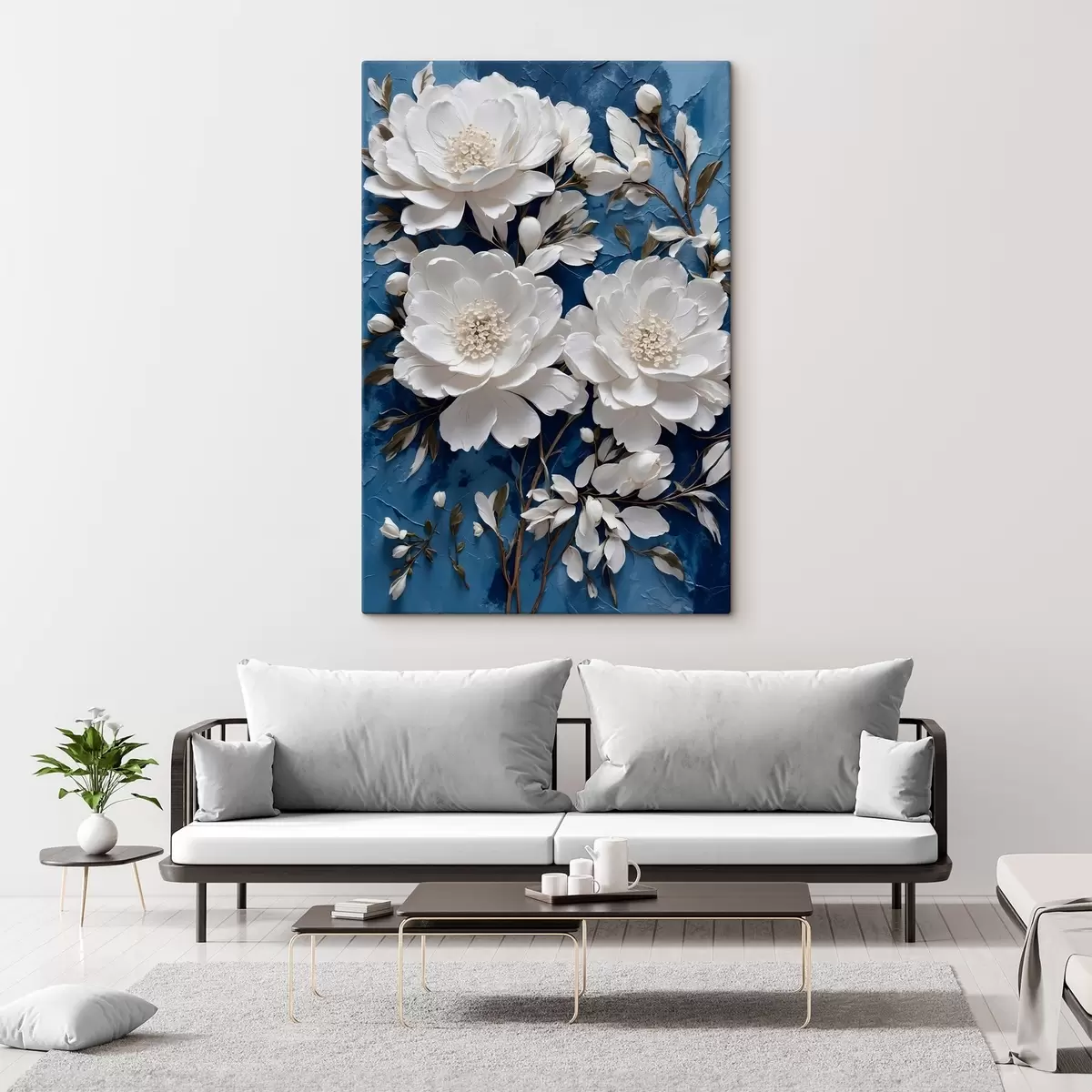 Obraz Białe kwiaty na niebieskim tle obrazu olejnego Nr s44091