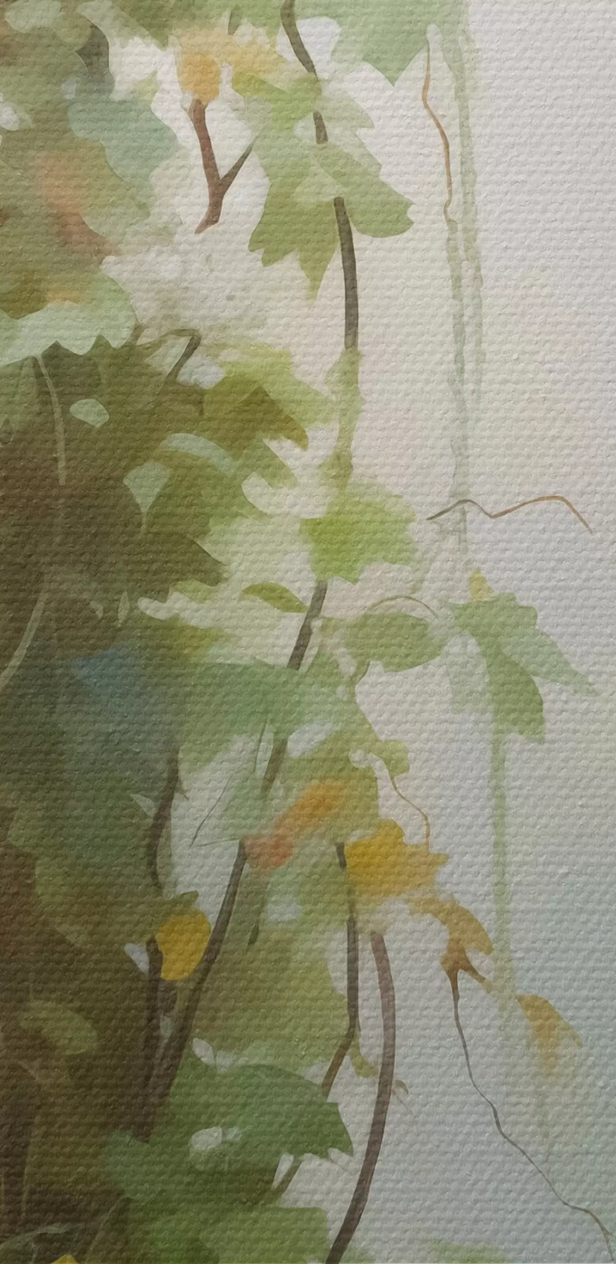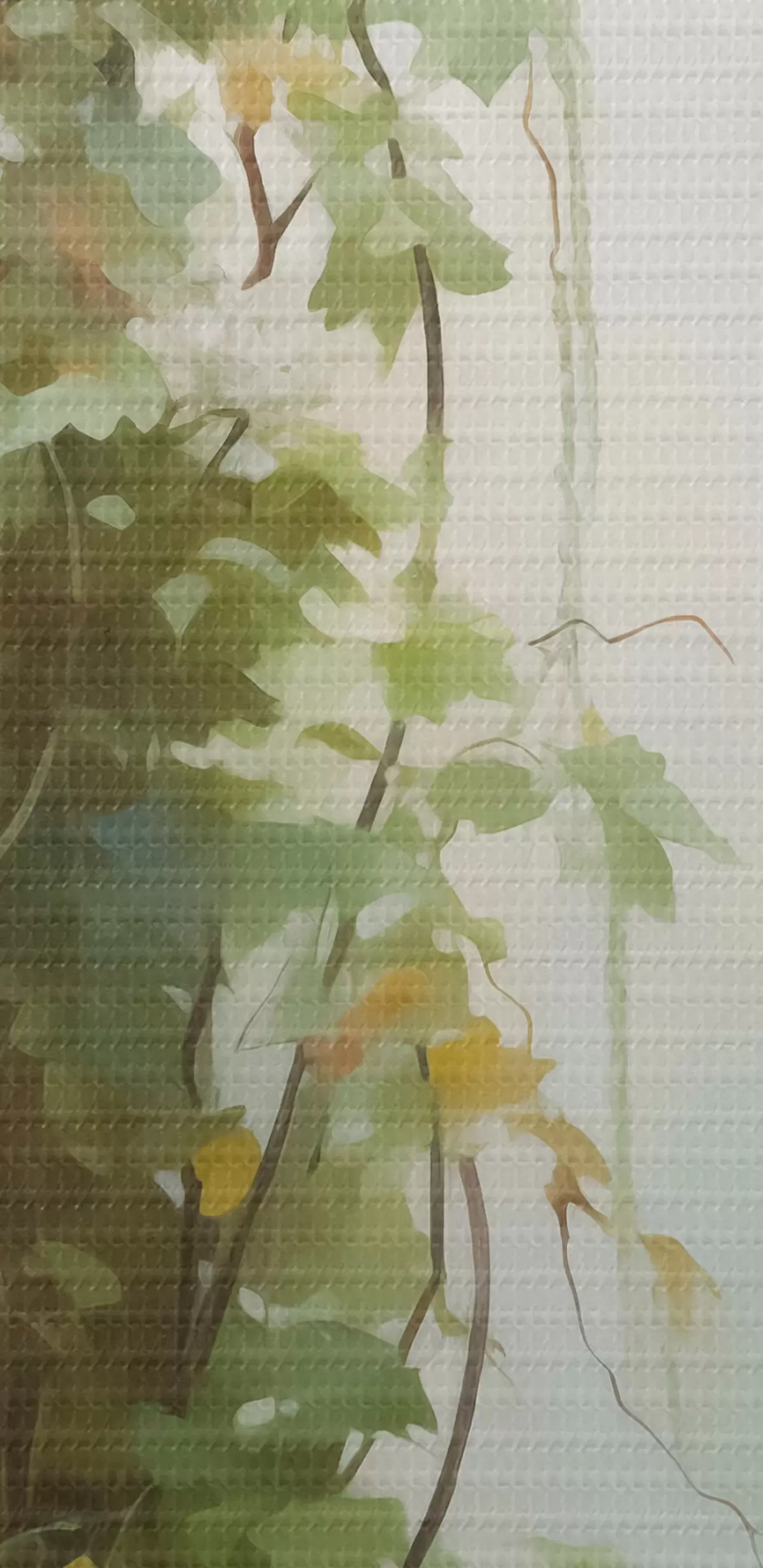 Drobny splot nici na tym płótnie przypomina powierzchnię profesjonalnych płócien artystycznych.