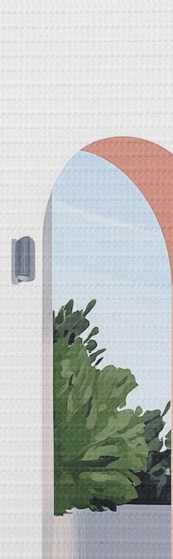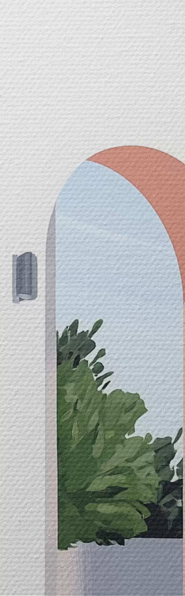 Obraz Biała willa z łukami i tropikalnym ogrodem, śródziemnomorski, płaski styl Nr s44153