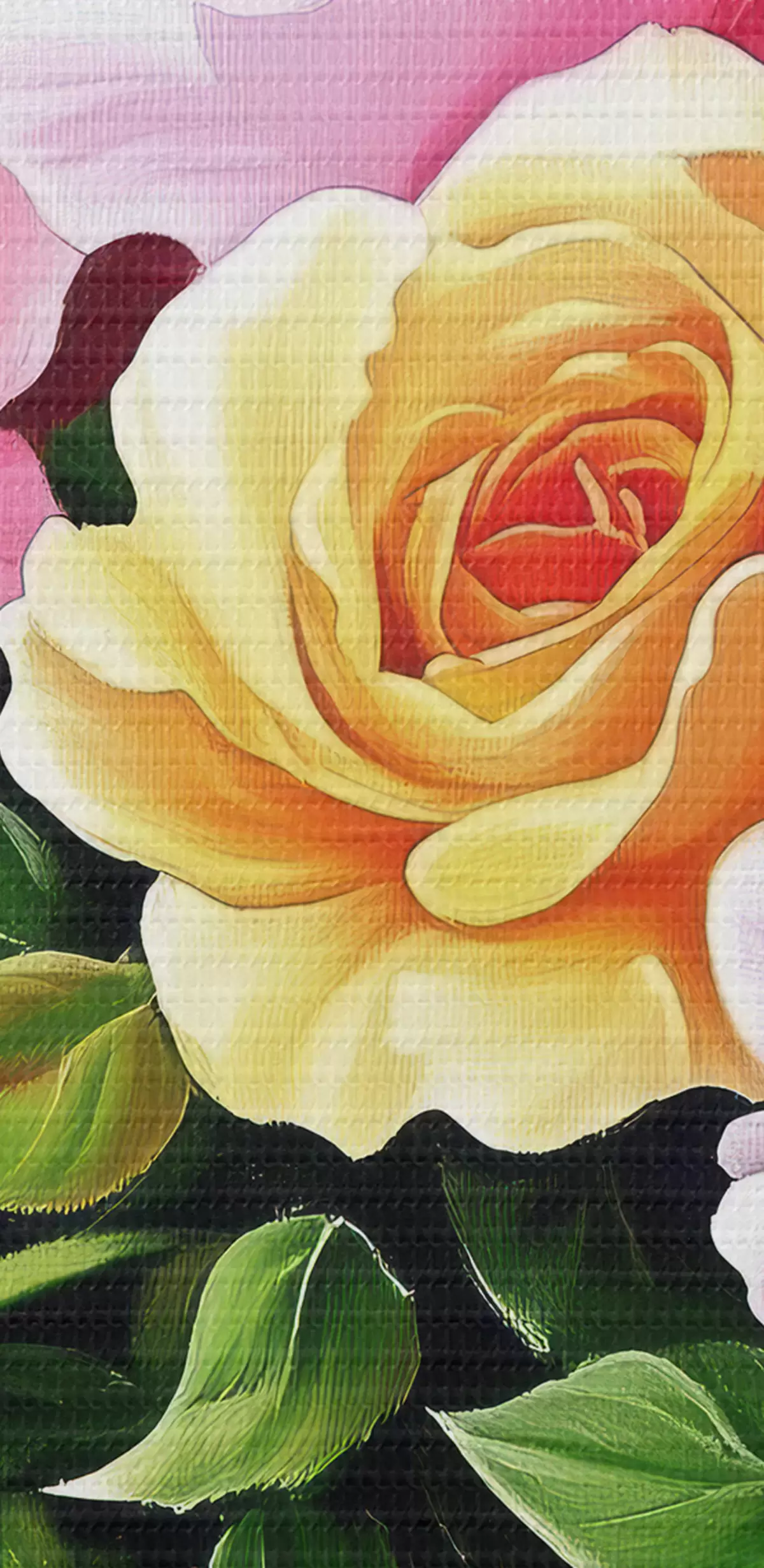 Drobny splot nici na tym płótnie przypomina powierzchnię profesjonalnych płócien artystycznych.