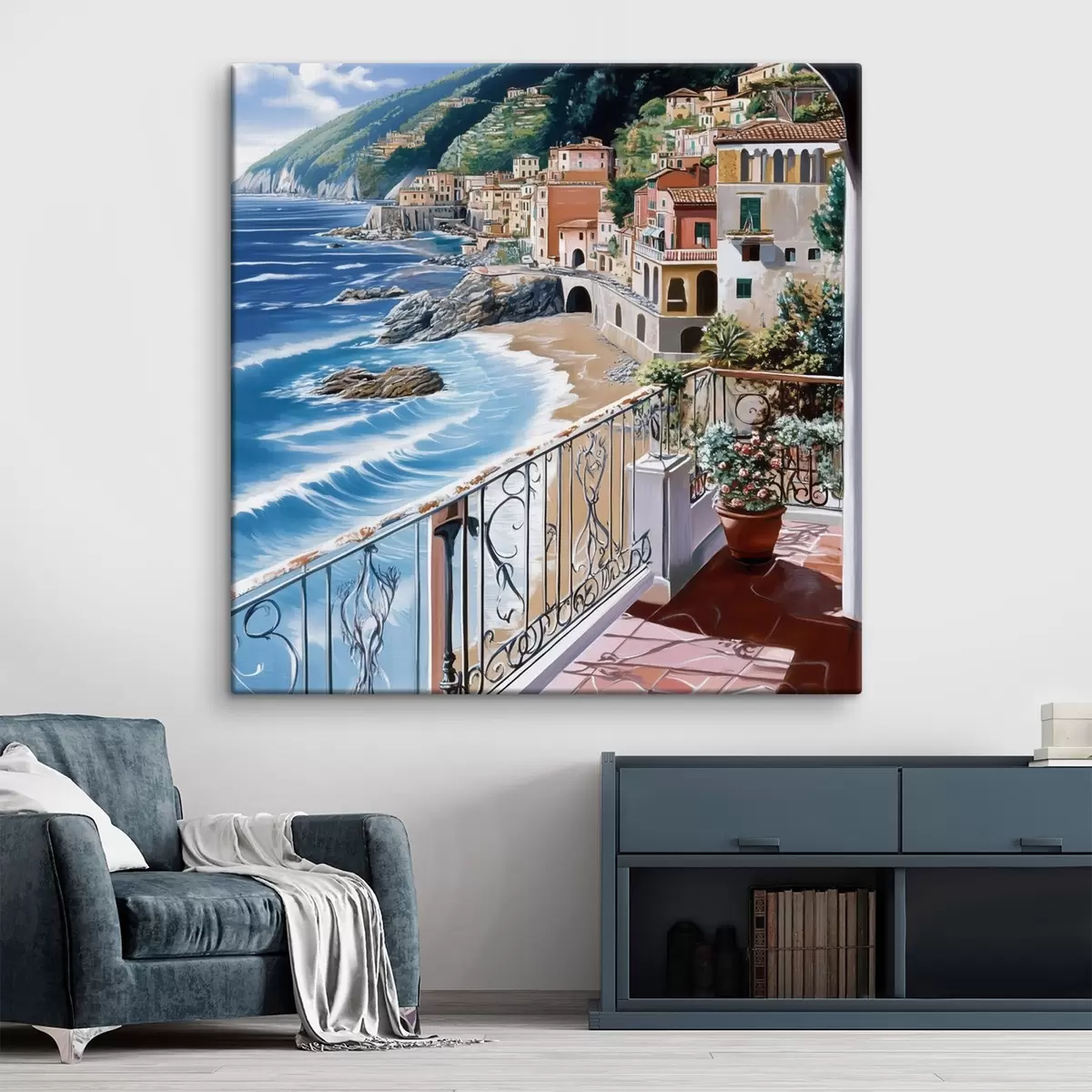 Sprzedajemy obrazy na blejtramie - jest to drewniana rama, na którą naciągnięte jest płótno. Tego obrazu nie trzeba oprawiać; można go powiesić bezpośrednio na ścianie.