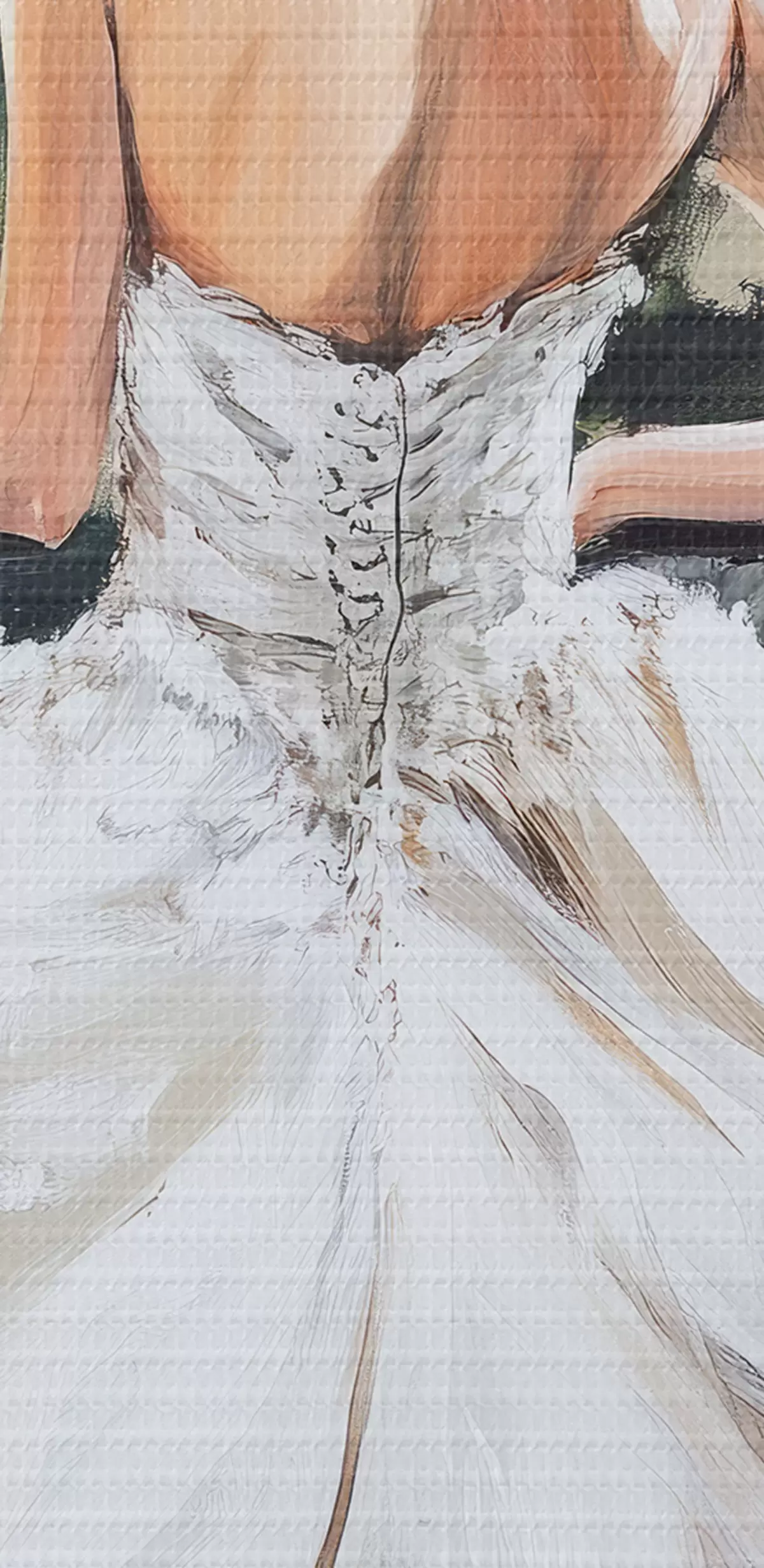 Do zamówienia dostępne są trzy rodzaje materiału: Economic Canvas - gęsty i trwały materiał do druku cyfrowego, identyczny z płótnem malarskim, wodoodporna powierzchnia, realistyczne odwzorowanie szczegółów, materiał średnioziarnisty. Premium Canvas - tekstura przypominająca płótno malarskie (przeplatane drobne nitki). Miękka, szczegółowa reprodukcja obrazu na matowej powierzchni. Eco-Premium - wysokiej jakości tkanina w 100% bawełniana. Dzięki naturalnym włóknom bawełnianym materiał jest trwały i odporny na zużycie. Doskonałe odwzorowanie kolorów i szczegółów.