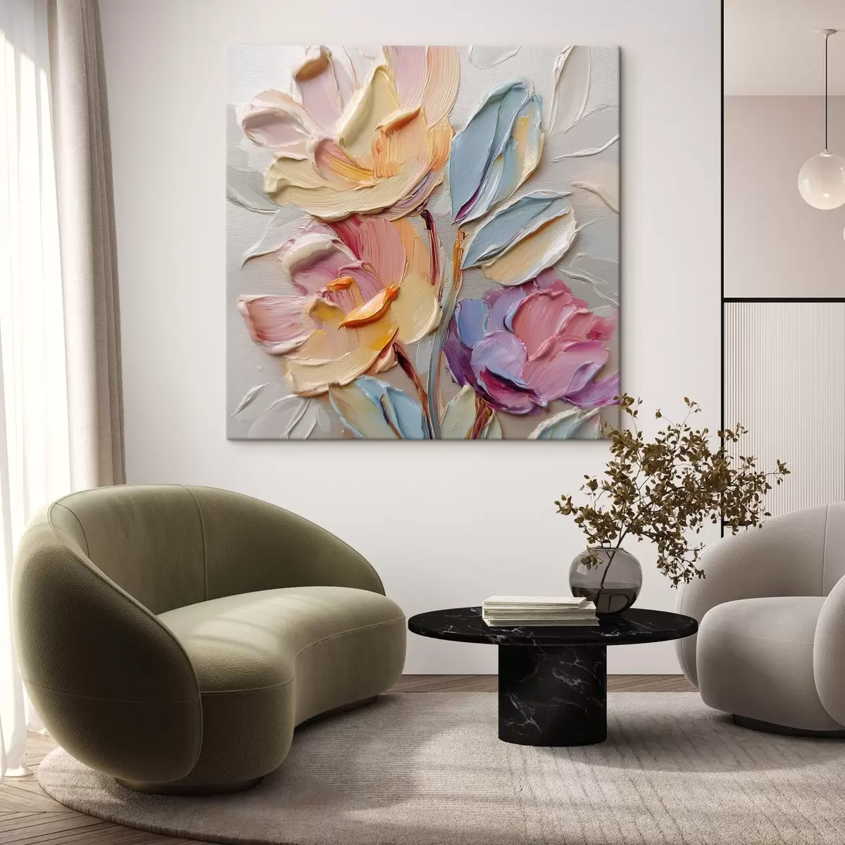 Sprzedajemy obrazy na blejtramie - jest to drewniana rama, na którą naciągnięte jest płótno. Tego obrazu nie trzeba oprawiać; można go powiesić bezpośrednio na ścianie.