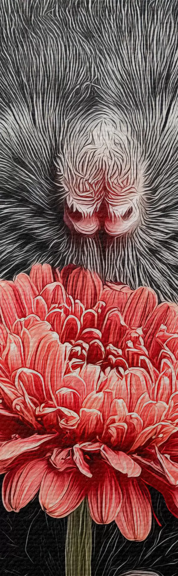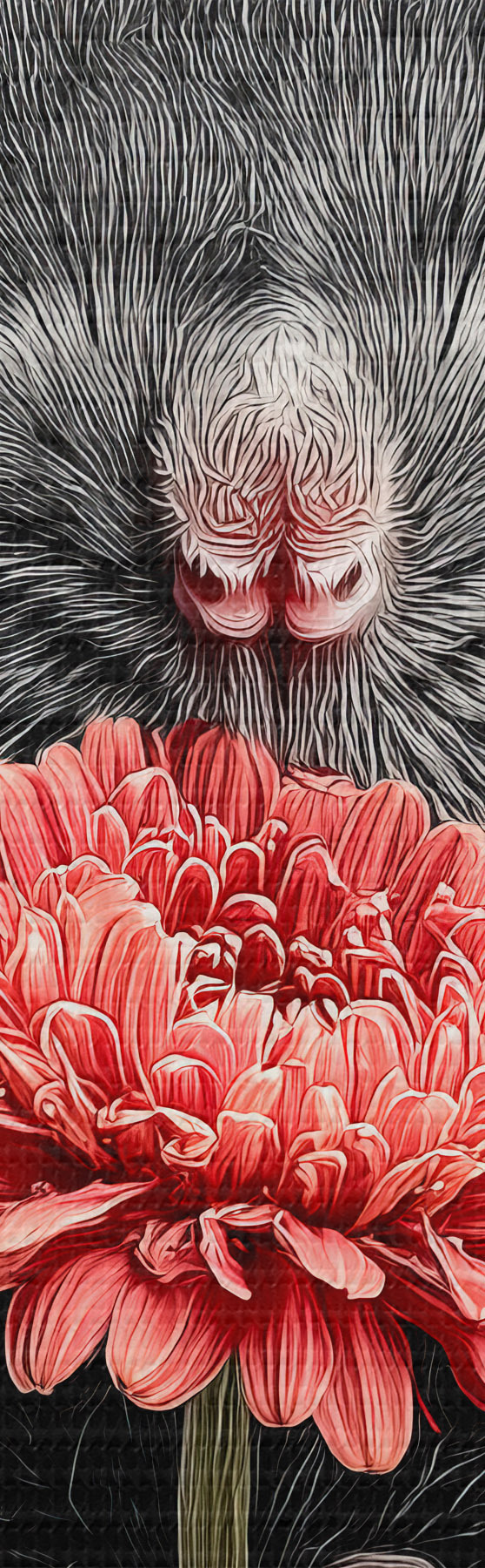Obraz Ciekawski szczur z różową gerberą w minimalistycznym stylu Nr s44241
